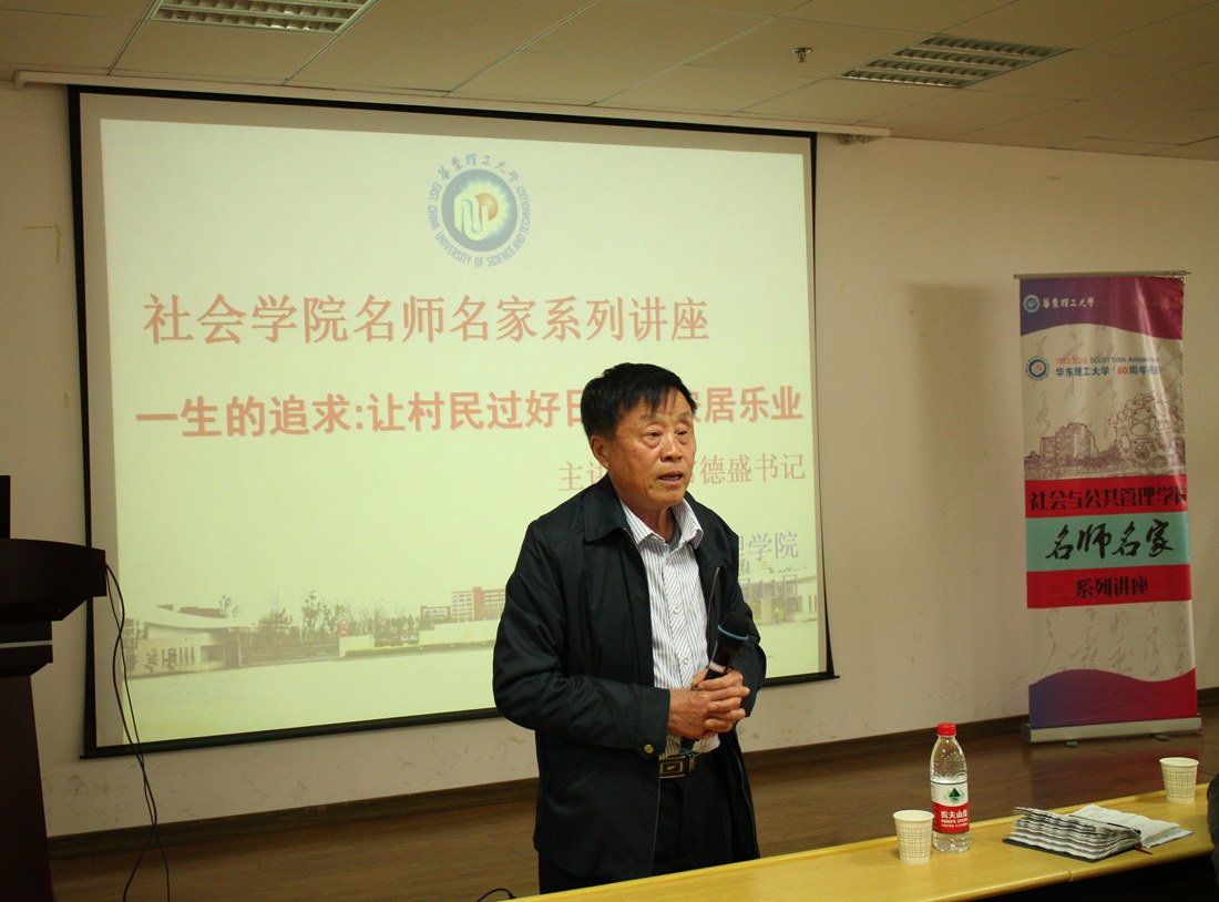 4月11日下午,社会学院名师名家系列讲座本学期第七讲在奉贤校区大学生活动中心215教室举行。主讲嘉宾为江苏省常熟市蒋巷村的常德盛书记,讲座主题是“一生的追求:让村民过好日子,安居乐业”。社会学院副院长纪晓岚教授、社会学系唐有财副教授、社会工作系徐荣老师出席本次讲座。讲座由社会学院分团委书记解鹏飞主持。