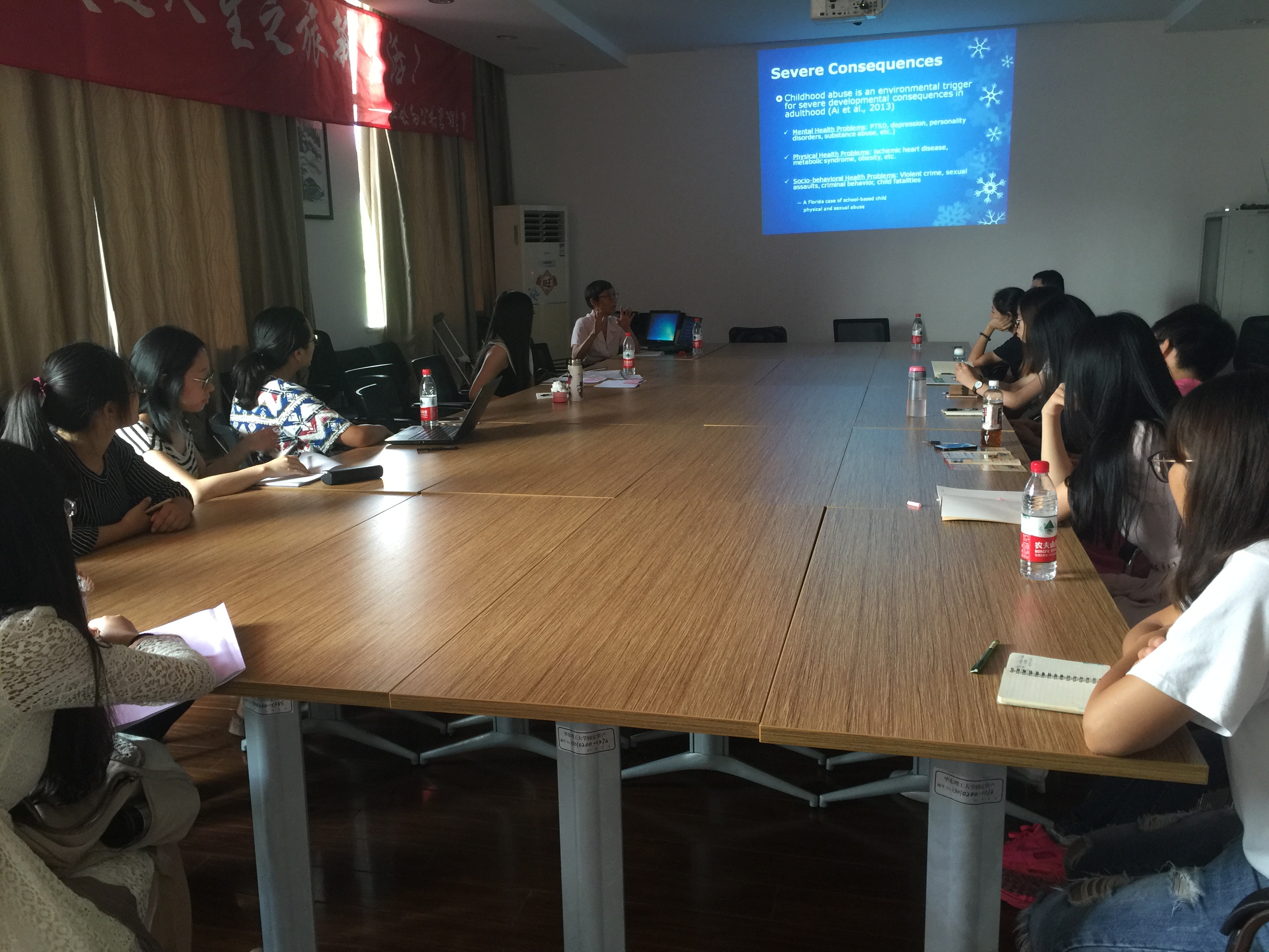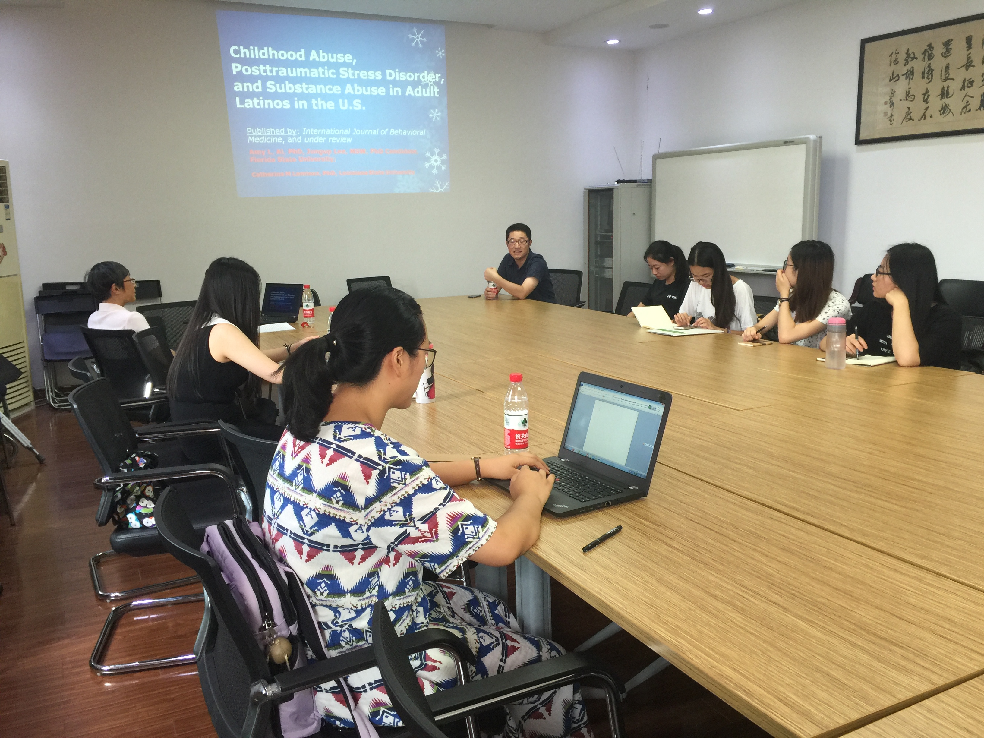 日前,美国佛罗里达州立大学社会工作学院Amy L. Ai教授来我校社会学院交流,商谈合作研究以及双方师生交流事宜。应必赢76net线路官网院长何雪松教授邀请,Amy L. Ai教授9月9日下午15:00在五教402室作了题为“美国最大少数民族群体中儿童期受虐待、创伤后应激障碍与药物滥用的关系”的讲座。讲座由社会学院院长助理、社会工作系副主任黄锐老师主持,参加讲座的有社会工作系青年教师,以及社会学院本科生、研究生等,共二十余人。