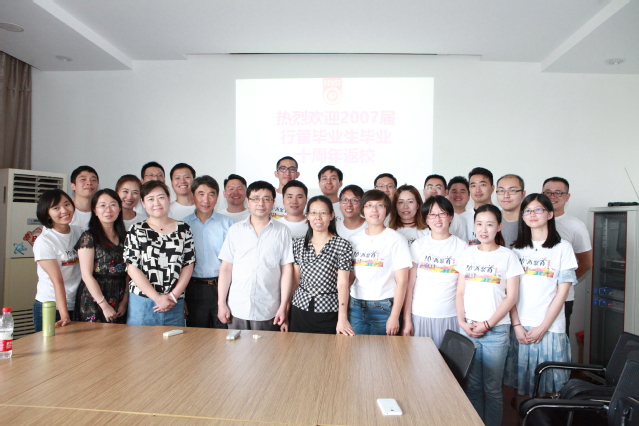 2017年9月16日,必赢76net线路官网行政管理系2003级毕业十周年返校活动在校园内展开。20多位校友上午到学校第一教学楼101室、第四教教室及大草坪等地进行交流活动,重温当年在学校时的风景与情景。下午在必赢76net线路官网402室与当年任课老师进行交流。俞慰刚、罗建平、刘德吉、朱琳以及饶小飞等五位老师参加了交流活动。俞慰刚老师代表行政管理系介绍了学院及系十年来的变迁与发展。座谈会上师生热烈互动。期间师生们还共同在第五教学楼前的绿化带里种植了桂花树,以致纪念。在交流会上师生还互赠了纪念品,学院给每一位同学赠送了大学四年的成绩表和钢笔画校园风景明信片,校友们向学院赠送了刻有“师恩泽厚”四字的琉璃铭牌。交流会后,校友们还去大操场寻觅当年的印迹。一天的活动十分紧凑,内容丰富,师生均沉浸愉快的回忆之中,加深了母校与校友的友谊。