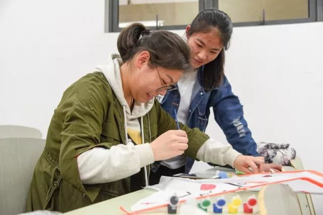 拿到材料之后,同学们便可以尽情的发挥自己的脑洞和绘画天赋,为原本空无一物的风筝增添色彩。同学们一笔一笔的在认真描绘,用鲜艳点缀着风筝;转眼间现场便多了许多颜色鲜艳,风格各异的风筝。让人不禁感叹大家的绘画和创意。