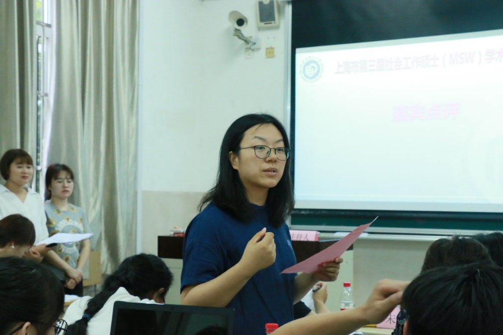 担任点评人的赵芳老师、朱眉华老师以及范明林老师分别在同学们结束发言后给予回应——赵芳老师强调了社会工作学术研究规范以及社会工作者应有的研究态度。