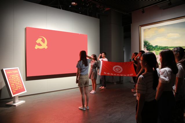 在参观纪念馆的过程中,受到革命英烈精神的伟大感召,在党旗之下,全体党员重温了入党誓词。怀着对英烈们的崇敬之情,在愈发坚定自己的初心与使命之下,党员们字字铿锵,发自肺腑,充满力量。