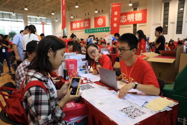 201898号,必赢76net线路官网迎来2018级新生。虽然上海地区秋意渐浓,但在奉贤校区体育馆副馆内,人群来来往往,处处都洋溢着迎新热闹欢快的氛围。