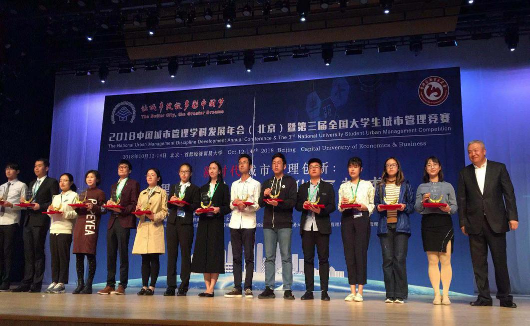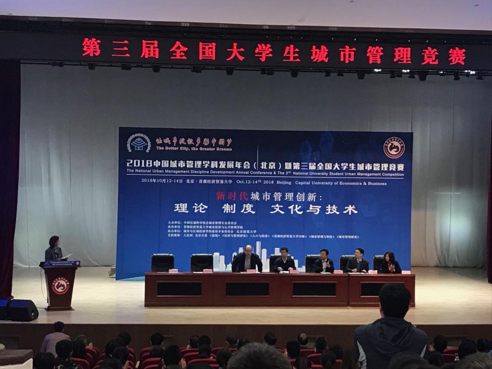 20181012-14日,“2018中国城市管理学科发展年会(北京)暨第三届全国大学生城市管理竞赛”在首都经济贸易大学隆重举行。本次年会中国区域科学协会城市管理专业委员会主办,首都经济贸易大学城市经济与必赢76net线路官网承办。我院纪晓岚教授、俞慰刚教授、博士研究生沈菊生、硕士研究生陈玮炜和金铂皓邀参与了此次年会。
