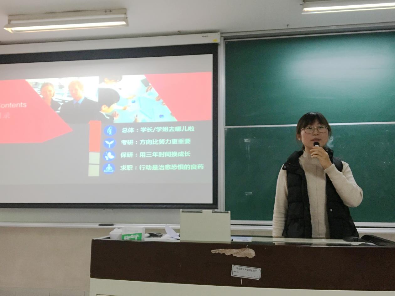 潘聪聪老师结合大量毕业生就业的实例,从“学长学姐去哪儿啦”、“方向比努力更重要”、“用三年的时间换成长”、“行动是治愈恐惧的良药”四个方面介绍了社会学院前几届毕业生的总体去向和今年的就业形势,精心制作了毕业季的求职简历,列举了重要的时间节点;她希望考研的同学找准目标和方向,保研的同学尽快制定读研计划迅速成长,找工作的同学能勇敢迈出脚步,加快求职步伐,树立求职信息,并鼓励同学们投身重点地区、重点行业和重点企业,胸怀祖国,志在四方。