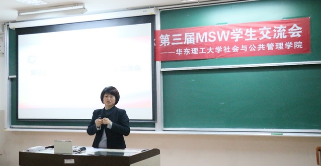 会议初始,社会工作系主任朱眉华教授为第三届MSW学生交流会做开幕致辞,朱老师分享了对三届学生进行教学的感受并赞扬了学生们务实勤奋好学的态度。同时也肯定了交流会为社会工作专业研究生提供一个学习交流的平台所作出的努力,并恳切希望MSW研究生要做好实务,做好研究,在华理的学习生活中展露才华,回报社会。
