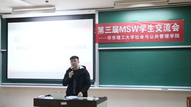第三届MSW交流会会长吴佳峻同学介绍了MSW学生交流会成立的初衷、成长历程以及交流会所举的办品牌活动,并提出了MSW学生交流会将继续以三届MSW学生的需求为出发点,今后会举办一些“小而美”、“小而精”的活动,助力华理社工系学生的成长。