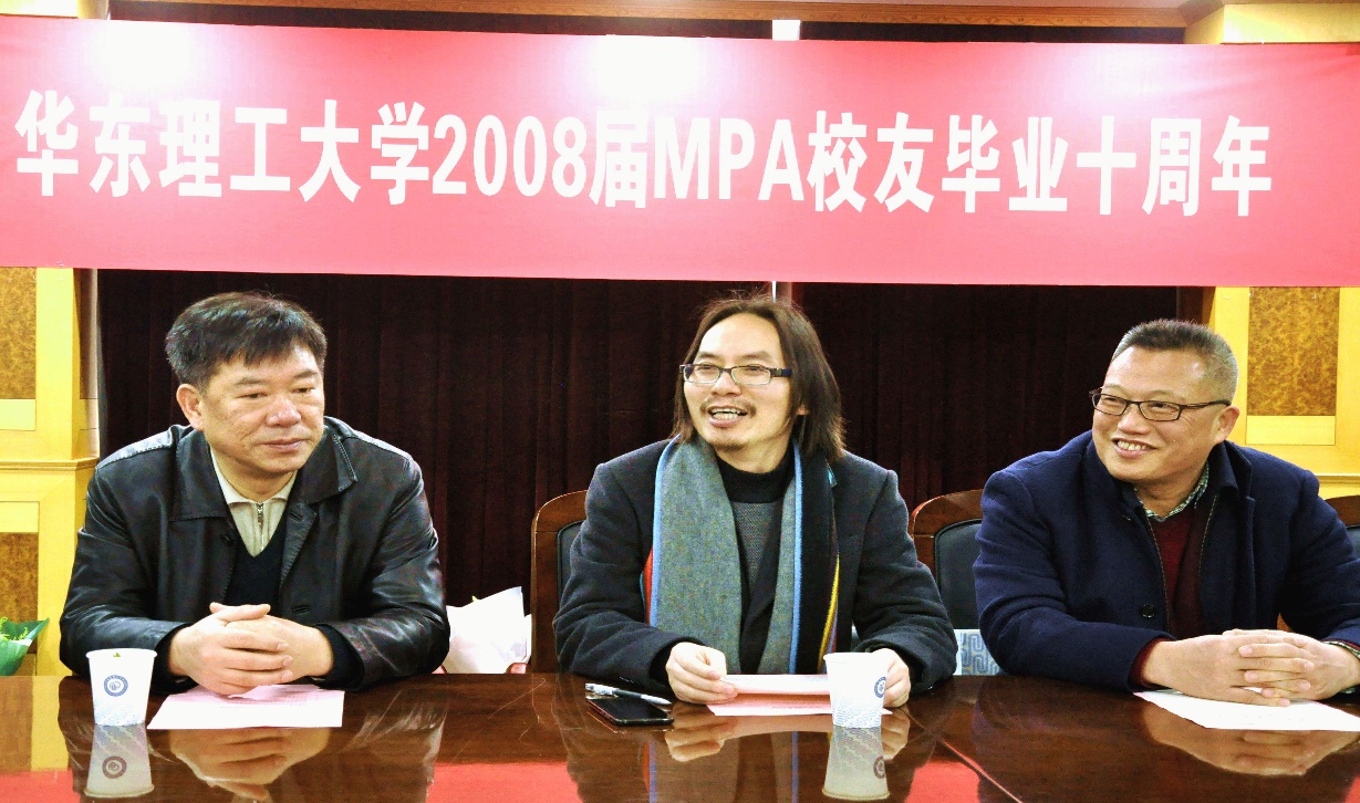 活动由张良教授主持,院长何雪松教授致欢迎词。何院长讲到,学院的发展离不开校友们的鼎力支持,学院也一直非常重视校友工作,下一步要加快推进必赢76net线路官网MPA校友会的组建工作,更好地服务和联络校友,希望借助校友会的平台,凝聚更多华理校友,在事业上合作,在发展上共赢。最后,何院长对各位校友的返校表示热烈的欢迎,同时邀请各位校友常回学院看看。学院副院长杨发祥教授回顾了必赢76net线路官网MPA教育的发展历程,并希望校友们能够对学院的建设发展,多提意见,多多支持。
