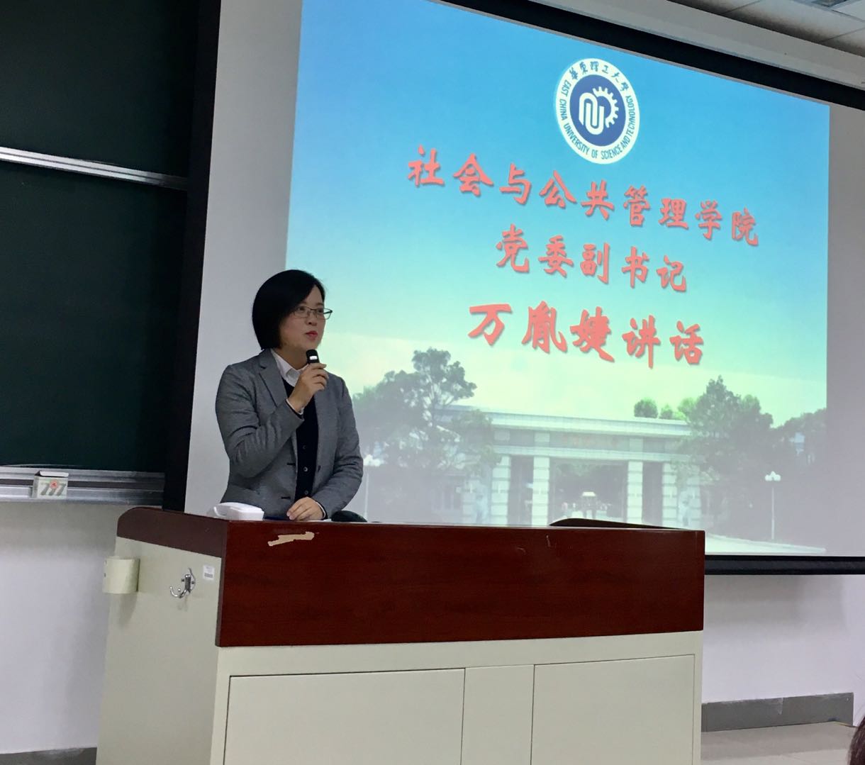 颁奖后,必赢76net线路官网党委副书记万胤婕讲话。她首先对此次社会工作奖学金资助者对我校社会工作教育和人才培养的大力支持予以了感谢,并对此次获奖学生所取得的优异成绩予以了肯定。接着,万书记对学生们指出,社会工作在当代社会发展与转型中具有重要作用,必赢76net线路官网在培养社会工作人才方面做出的积极贡献,并例举了我校多名优秀的社会工作学生近年来所取得的成绩,希望同学们以他们为榜样,拥抱梦想、踏实前行;最后,万书记希望同学们要心怀感恩之心,对他人、对社会充满爱