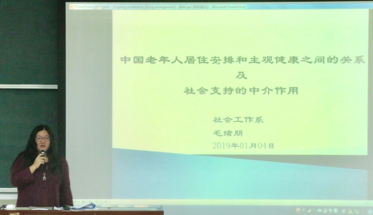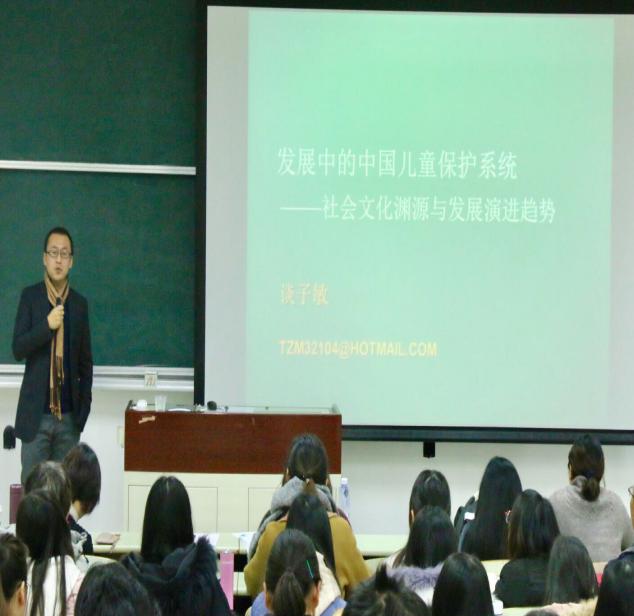 颁奖典礼后,社会工作系新进青年教师毛绪朋博士、谈子敏博士分别为同学们作了专题研究报告。毛绪朋博士报告了《中国老年人居住安排和主观健康之间的关系及社会支持的中介作用》从定量研究角度分析了老年人居住安排之间的复杂关系机制;谈子敏博士报告的《发展中的中国儿童保护系统——社会文化渊源与发展演进趋势》,反思了我国现在儿童保护机制的现状、不足以及进一步提高和加强儿童保护机制的困难和可能性两位青年学者的研究对社会工作系本科和研究生有很大启发,在学术研究方面具有一定的引领作用