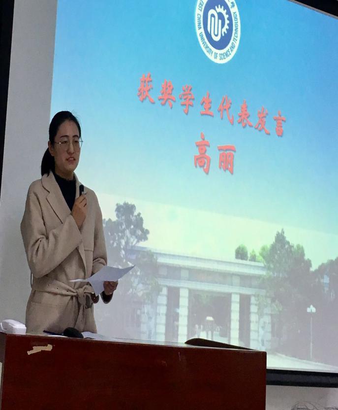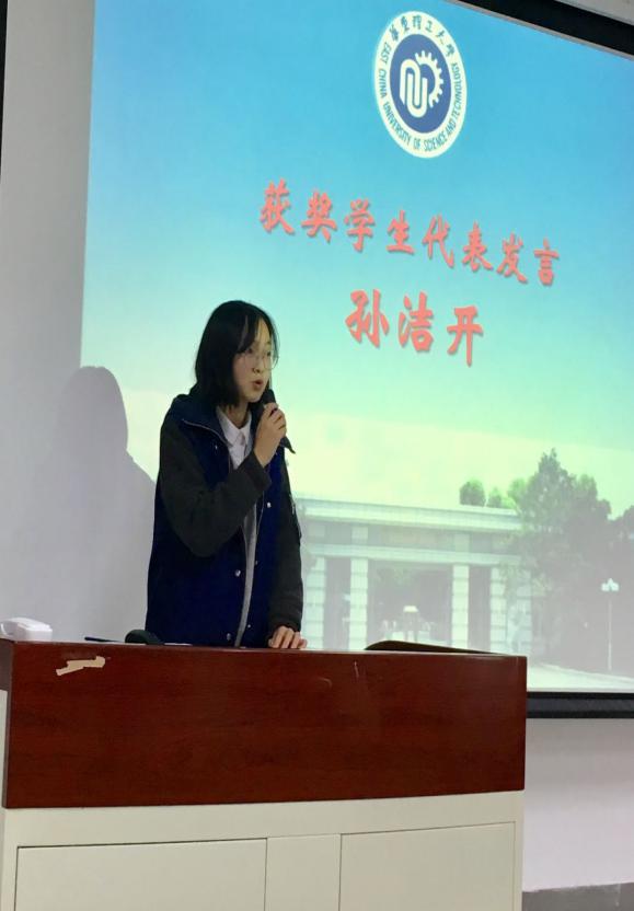 6赵环社会工作专业奖学金”获奖代表高丽发言 7永真社会工作本科新生奖学金”奖代表孙洁开发言
