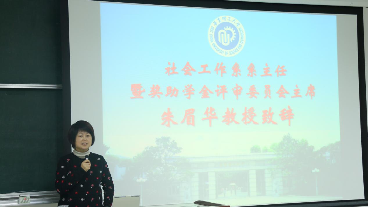 社会工作专业奖助学金评审委员会委员梁昆、徐选国等老师分别介绍了“赵环社会工作专业奖学金”、“永真社会工作本科新生奖学金”、“永真社会工作研究生新生奖学金”的由来和评选标准,并为奖学金获得者颁发荣誉证书。颁奖环节结束后,分别由“赵环社会工作专业奖学金”获奖代表高丽、“永真社会工作本科新生奖学金”获奖代表孙洁开分享获奖感言她们分享了与社会工作的结缘、受社会工作点滴故事启发而坚定了对社会工作的拥抱和学习之路