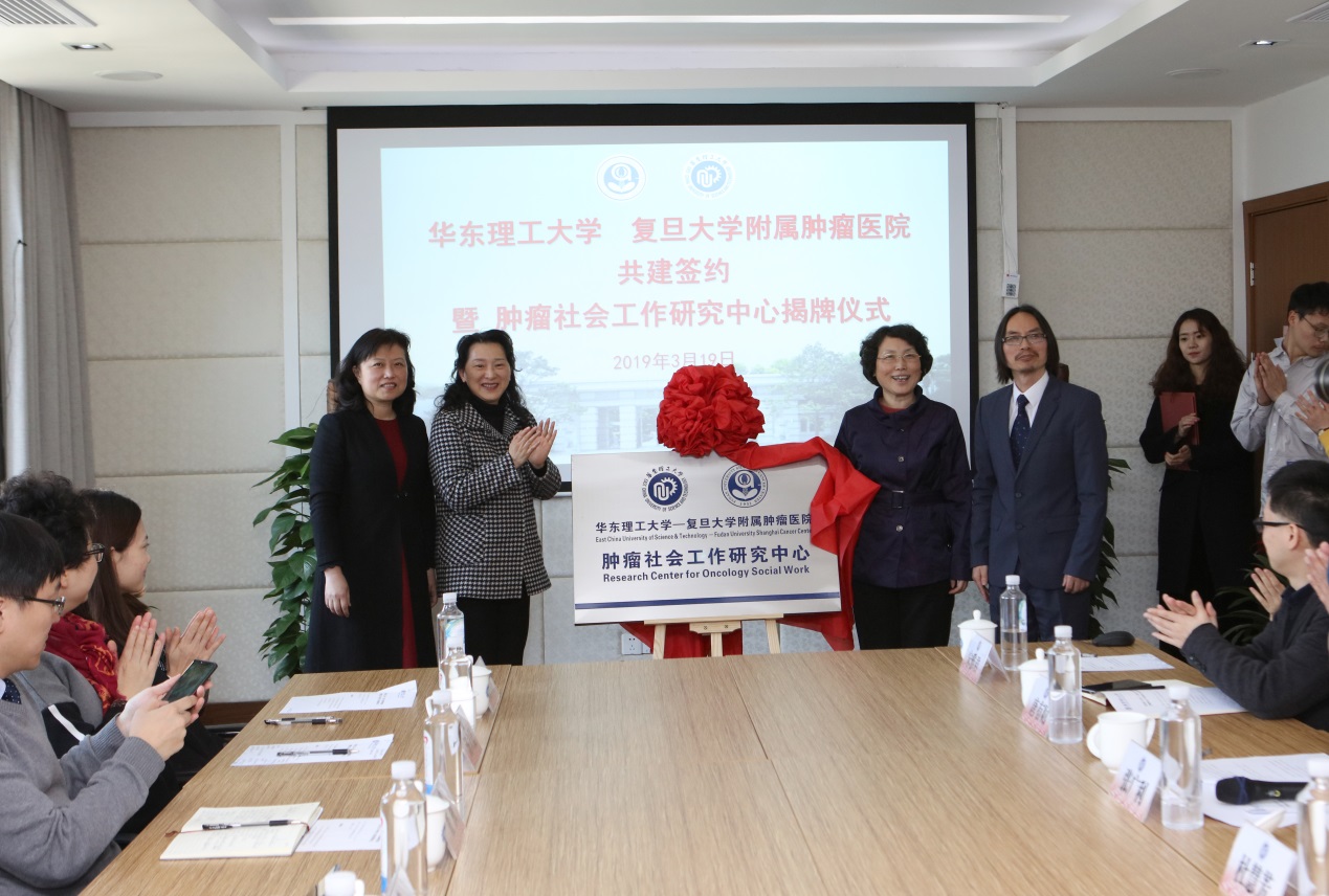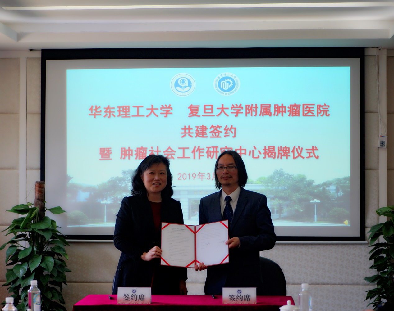 会上,何雪松何顾文英分别代表必赢76net线路官网与复旦大学附属肿瘤医院签署了肿瘤社会工作研究中心共建协议。签约结束后,杜慧芳、何雪松、顾文英、俞军共同为肿瘤社会工作研究中心进行揭牌并合影留念。