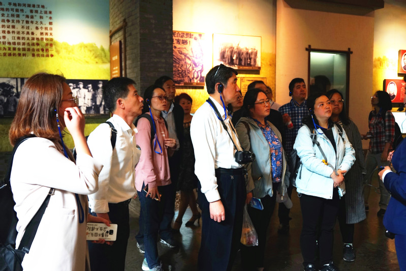 20日,在鲍家渔村现场体验课,参观抗战遗迹-东来茶馆、后方医院,观看大型实景剧《智斗胡司令》、穿越芦苇荡、重走江抗路等一系列体验式教育活动中,党员教师们身临其境的感受到当年军民紧密配合,共同抗击日寇的英勇斗争场面,接受了一堂生动鲜活的党性教育。