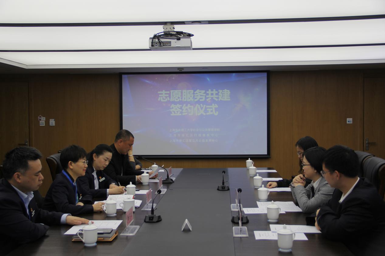4月28日上午,社会学院和徐汇区行政服务中心志愿服务共建签约仪式在徐汇区行政服务中心会议室举行。社会学院党委副书记万胤婕、团委书记严任舟,徐汇区行政服务中心分党组副书记郑怡、办公室主任关屹、效能监管科科长杨宇欣,徐汇区爱立方公益发展中心理事长周松以及学生志愿者代表出席仪式。