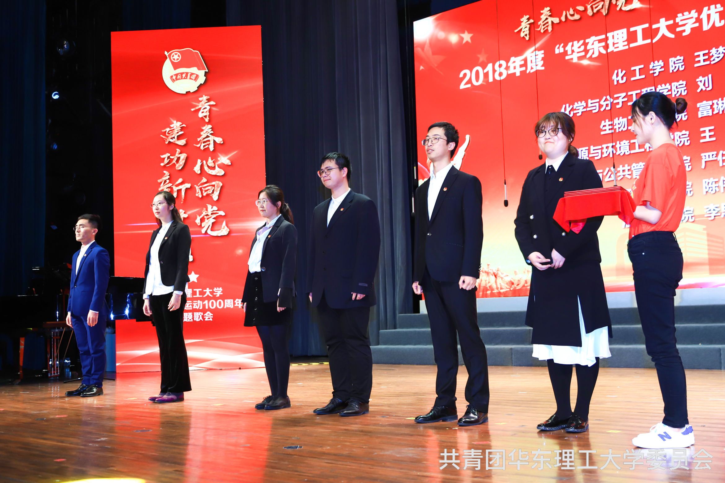 56日晚,必赢76net线路官网“青春心向党,建功新时代”纪念五四运动一百周年主题歌会暨五四表彰大会在大学生活动中心剧场举行,我院团委荣获2018年度“上海市五四红旗团委”、 “必赢76net线路官网五四红旗团委(标兵)”等多项光荣称号,我院团委书记严任舟老师获“必赢76net线路官网优秀专职团干部”,我院研究生张洺硕同学荣获2018年度“上海市优秀共青团员”,社保162班荣获2018年度校“十佳团支部”称号。这些丰硕成果是对我院团委一年来踏实工作的肯定。