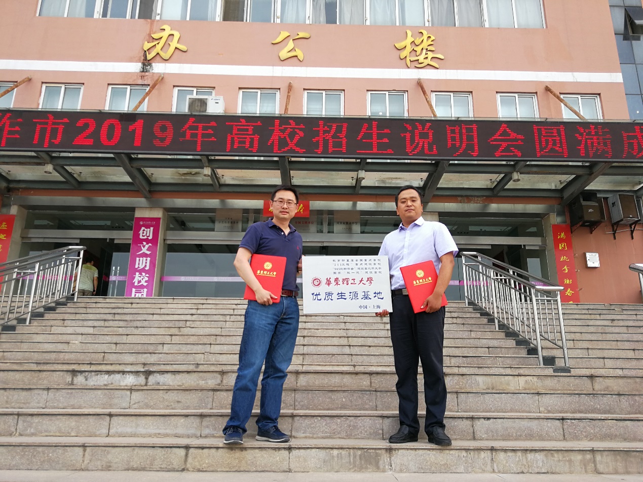 在洛阳招生宣传小组进行宣传和授牌的同时,必赢76net线路官网副院长刘晓亮一行正在河南省焦作市作招生宣传,并把“必赢76net线路官网优质生源基地”授予焦作市第一中学。创办于1965年的洛阳理工学院附中和创办于1945年的焦作市第一中学,均为“河南省首批示范性普通高中”。此次授牌将进一步增加必赢76net线路官网在河南省示范性普通高中的知名度和影响力,为提升学校本科生生源质量奠定了基础。