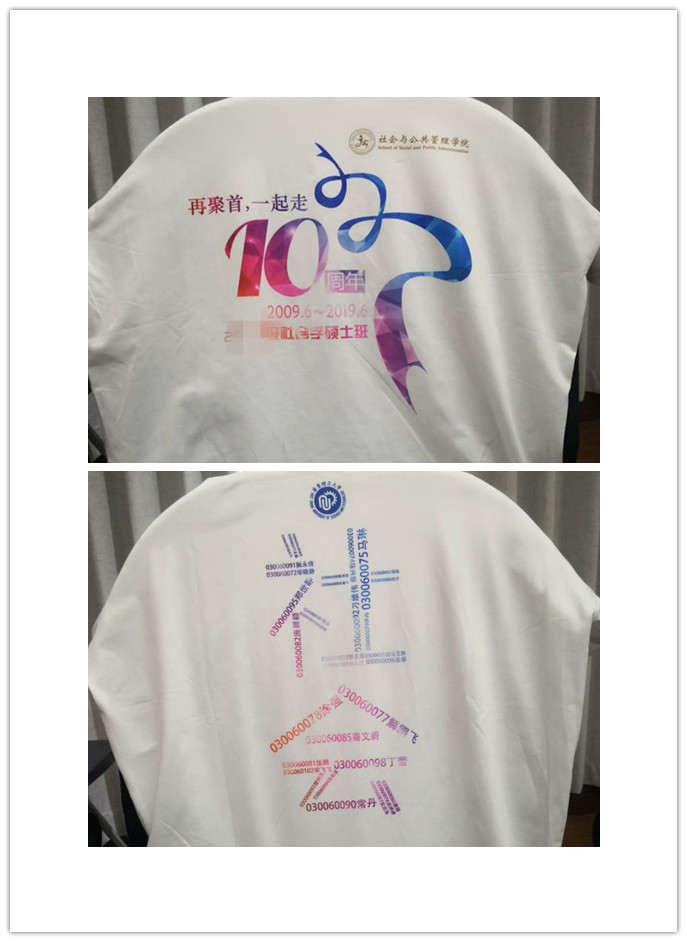 本次十年聚以见一次面、拍一张照、进一间教室、逛一趟校园、看一眼宿舍、搞一场活动、开一次班会、写一封信给十年后的自己、谢一届老师、吃一顿食堂等“十个一”的场景逐次开展。在定制的体恤衫上,由全班同学名字组成“社会”图案是他们感恩学校教育老师教诲的集中体现,专业、包容、豁达都集中在“社会”二字上。
