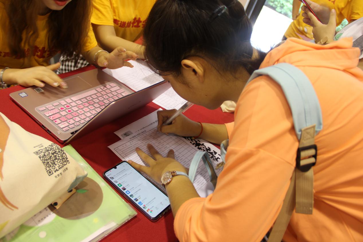 31日上午,第一批报道的同学携带录取通知书等各种证件抵达报到地点,馆内虽人头涌动却井然有序,同学们在志愿者帮助下有序完成报到手续并领取相关材料。