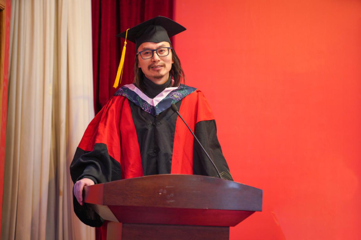 首先,研究生院副院长郑致钢教授宣读毕业生名单,授予王罗清等4人博士学位、韦悦等96人硕士学位。在激昂的乐声中,导师们为毕业生拨穗正冠、颁发毕业证。
