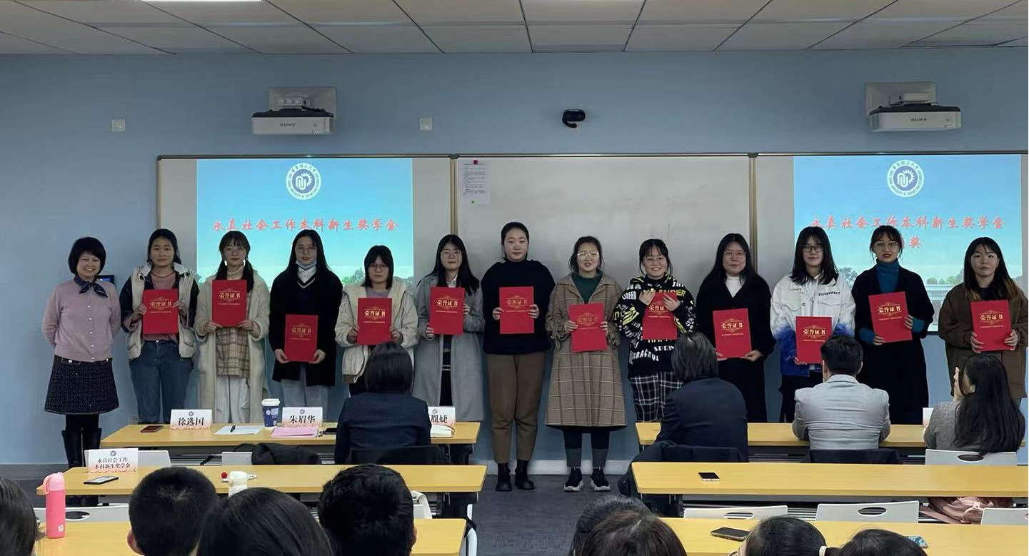 图2 朱眉华主席为“永真社会工作本科新生奖学金”获得者颁奖