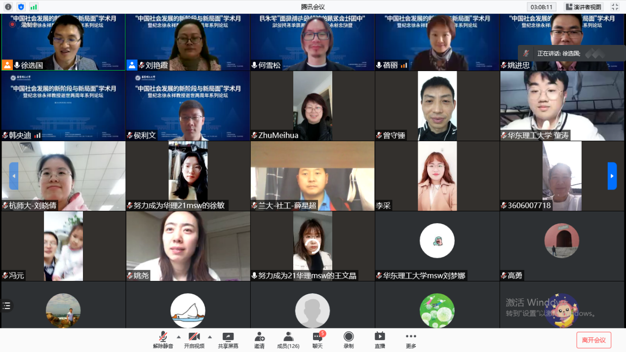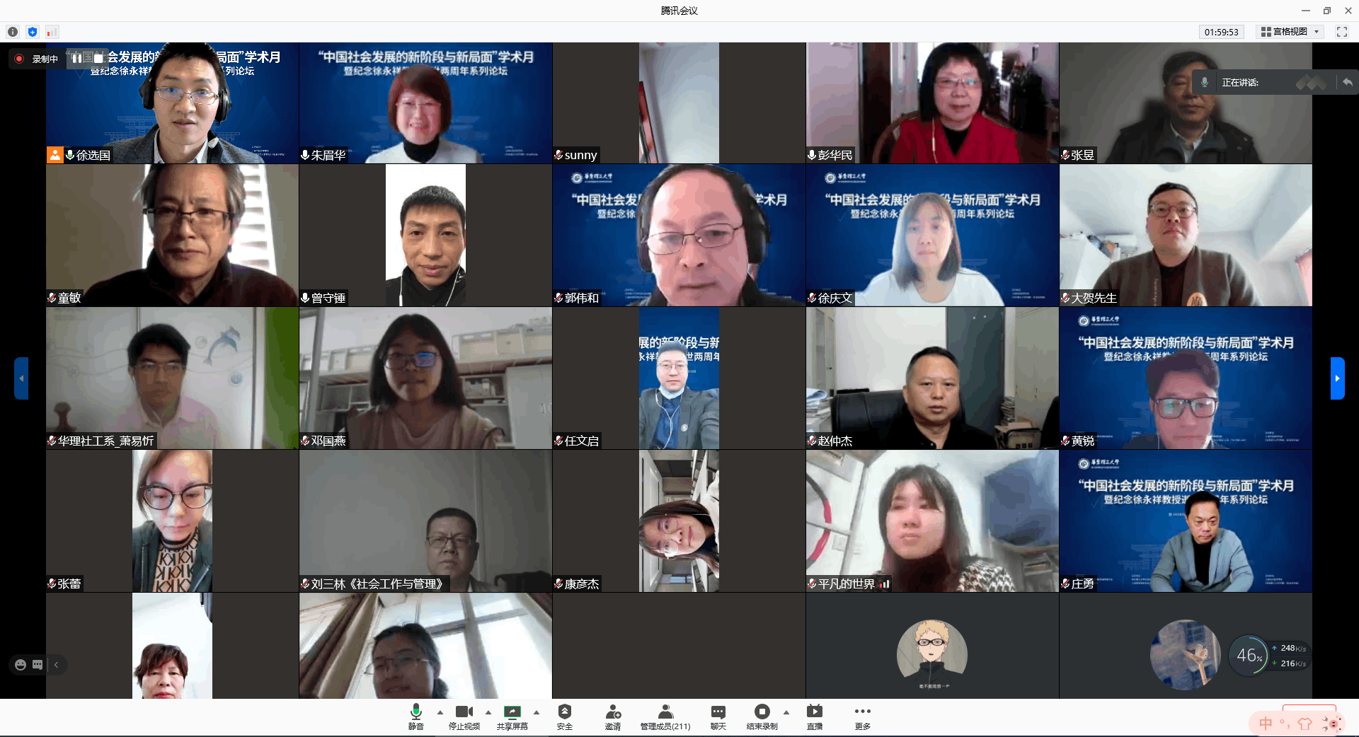 2021年3月26日-3月27日上午,“中国社会发展的新阶段与新局面暨纪念徐永祥教授逝世两周年”系列论坛之五——“中国特色社会工作的理论探索与实践创新”云端学术论坛顺利举办。本次论坛共有来自北京大学、中国人民大学、复旦大学、中山大学、厦门大学、中央民族大学、南京大学等多个科研院所的28位专家学者作精彩报告及点评。论坛共分五个单元,会议安排紧凑,与会者进行了深入而激烈的探讨,有近300多位研究者、一线社会工作者及学生通过直播或腾讯会议参与其中。