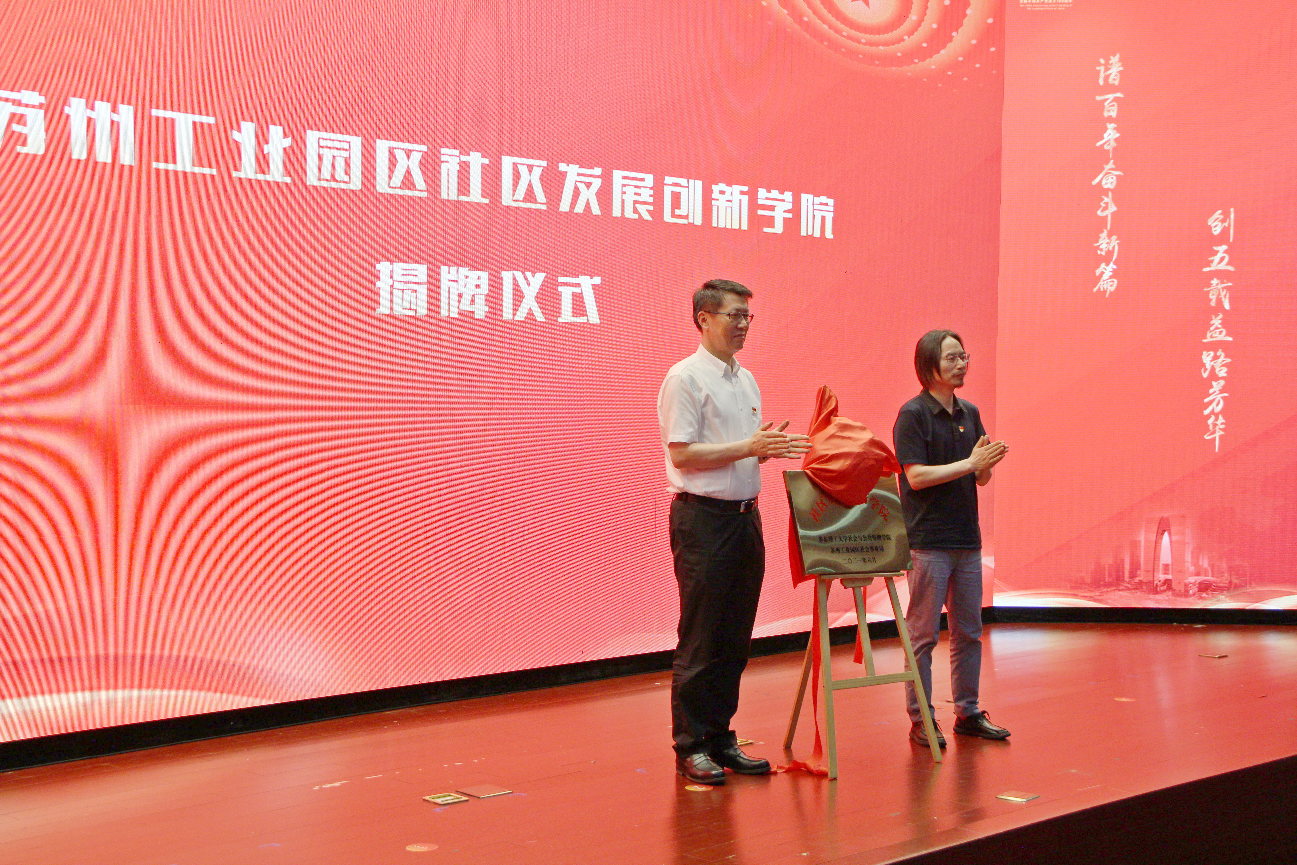 交流会上,何雪松院长与顾三强共同为“社区发展创新学院”揭牌,拉开了我院与苏州工业园区就社区发展、社区治理、社区工作人才队伍建设等议题的合作深化之路。何雪松院长在致辞中表示:园区在社会组织、社区治理和社会工作方面已经取得了积极进展,社区治理共同体的相关要素已经基本具备。苏州工业园区是全国改革开放的窗口,我们希望园区同时也能成为全国社区治理创新的窗口。必赢76net线路官网拥有雄厚的社会工作和基层治理研究团队,借助此次与园区社会事业局共建“社区发展创新学院”的契机,今后将进一步主动服务长三角一体化战略,将理论与实践有机结合,将基层有效的经验转化成典型案例、转化成教材、转化成可推广可复制的经验,致力于推动苏州工业园区经济社会协调发展,并将其经验推广到全国。