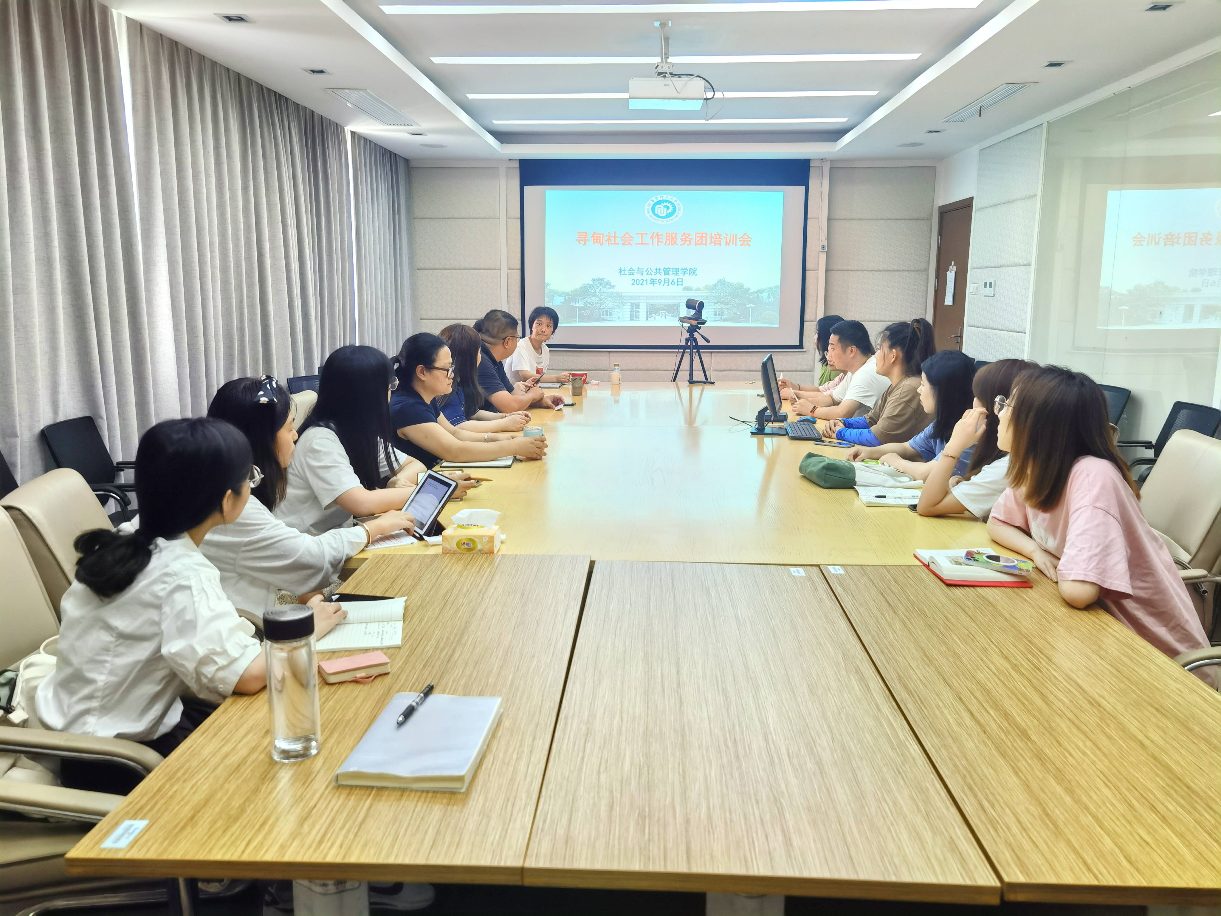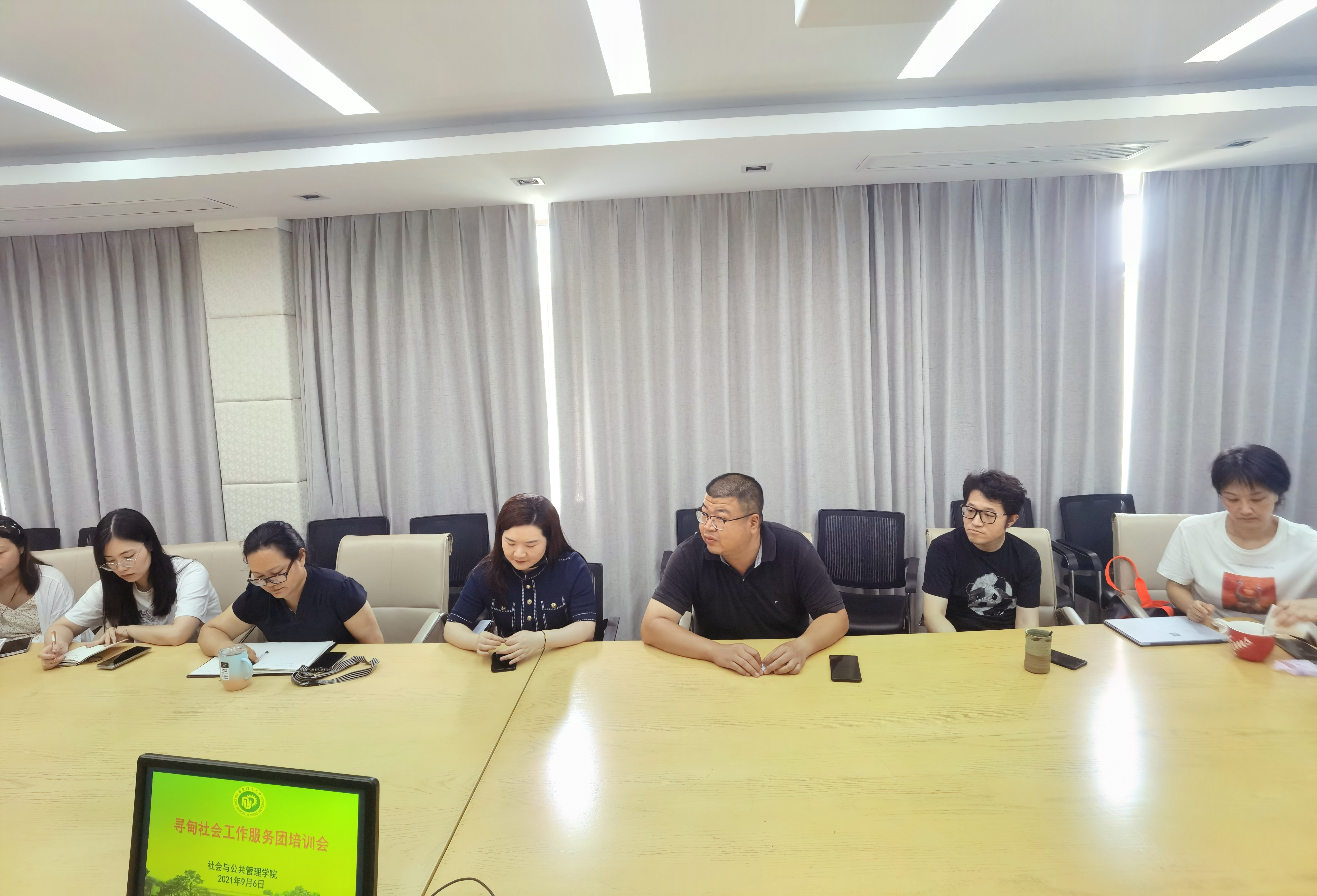 2021年9月6日下午,必赢76net线路官网寻甸社会工作服务团培训会暨2021年实习启动会顺利开展。学院党委副书记储琰、社会工作与社会政策研究院副院长黄锐、社工系副主任徐选国、学院专业学位中心副主任刘艳霞、MSW教育中心副主任陈蓓丽副、实习专任教师聂华萱老师,以及8名2020级MSW学生共同参与了“寻甸社会工作服务团”培训会。
