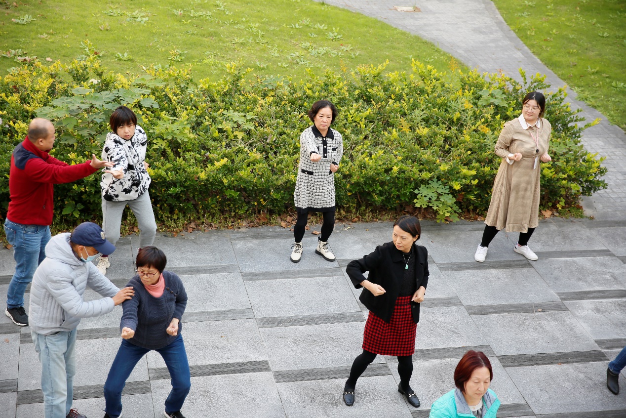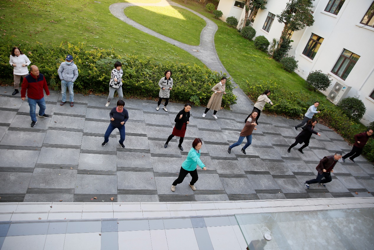 俞楠、郭圣莉两位老师主动担当教练。八段锦倡议受到老师们的欢迎,并逐渐发展为常态。参与八段锦的老师表示:“每天伏案时间长,又缺乏运动,极易引发颈椎、腰椎及肩周炎等慢性病。八段锦不但能舒展一下身体,还能正气提神更好地投入工作。”
