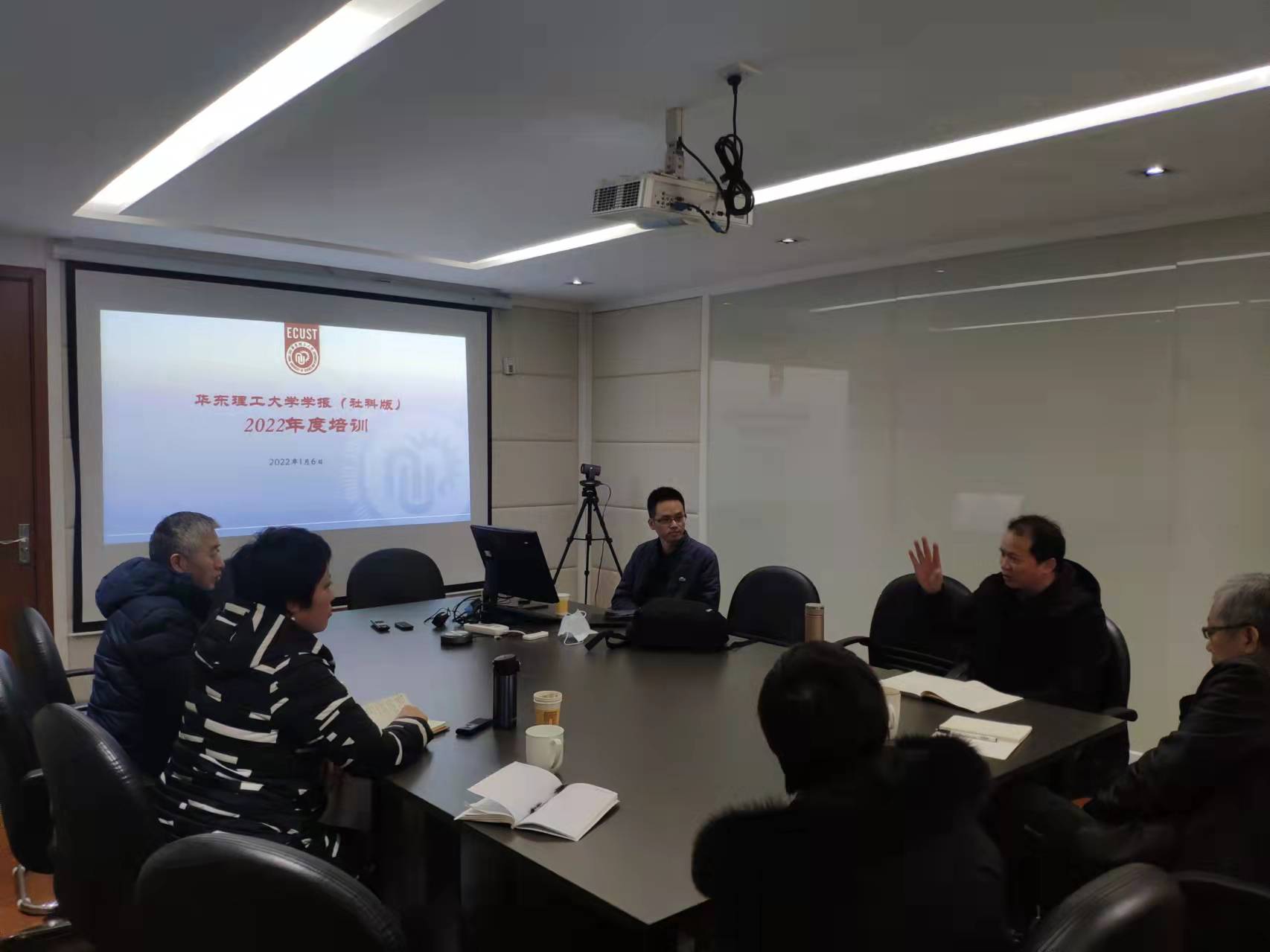 2022年1月6日上午,《必赢76net线路官网学报》(社会科学版)编辑部在团结一二楼318会议室召开培训会,邀请上海市社会科学院党委宣传部副部长、《史林》杂志副主编王健研究员做专题培训。编辑部全体人员参加了培训会,会议由常务副主编汪华主持。