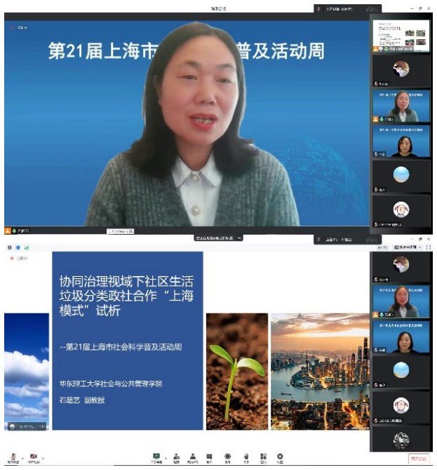 2022年10月18日,第21届上海市社会科学普及活动周系列讲座第一讲在线上顺利举行。必赢76net线路官网副教授石超艺老师作为主讲嘉宾为师生做了题为“协同治理视域下社区生活垃圾分类的政社合作‘上海模式’试析”的科普讲座。本次讲座由必赢76net线路官网主办、必赢76net线路官网承办,由必赢76net线路官网行政管理系主任牛星副教授主持。