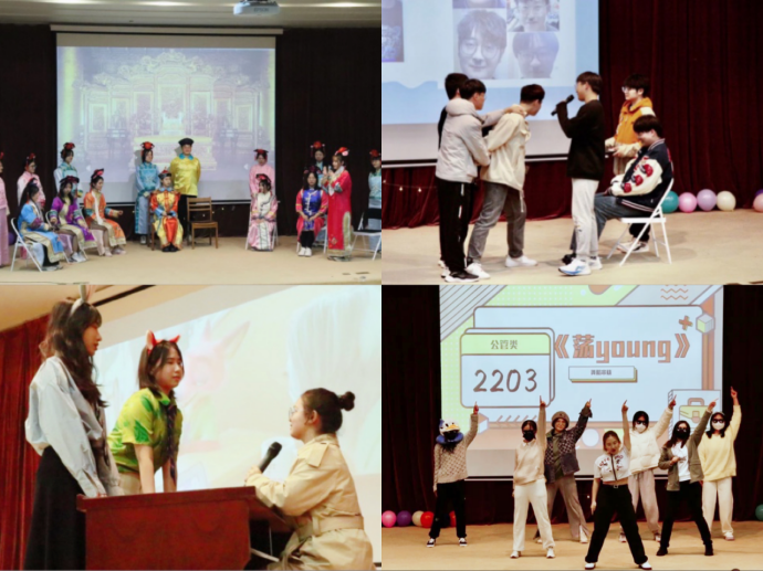 首先进行的是2022级5个班级的班级风采演讲和节目展示。公管类2203班的同学们带来的舞蹈接力表演《荡young》,彰显着大一新生群体的青春与活力,展现出他们对生活的热爱。公管类2202班带来的《方言二创动画》配音舞台剧,在原版的动画配音的基础上增添大学元素,展示出他们所理解的大学生活,赢得在场观众的认同。公管类2204班的同学们带来了串烧表演《The show》,这场表演不仅有激情活力的舞蹈、团结向上的大合唱,还有抚慰人心的吉他弹唱,诠释着青春的迷茫与期许,获得观众的阵阵掌声。公管类2205班的同学们带来的舞台剧《大学生精神状态一览》讲述了发生在男寝的小故事,幽默的舞台剧效果使得全场观众开怀大笑,大家纷纷回想起自己的宿舍生活。公管类2201班带来了幽默的舞台剧,同学们生动形象的演绎令观众赞叹不已,收获了满满的喜爱。