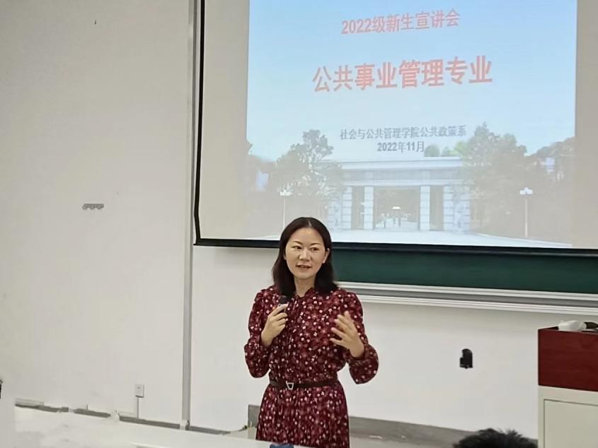 公共事业管理专业宣讲活动中,公共政策系副系主任方学梅老师从公共事业管理专业的定义、专业必修课以及未来方向三个方面介绍了公共事业管理专业,鼓励大家 “不要争做成功的人,要努力去做有价值的人”。