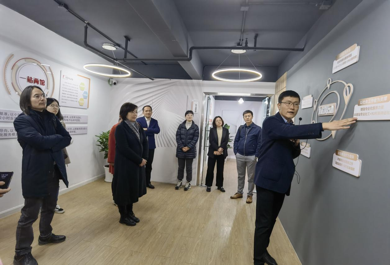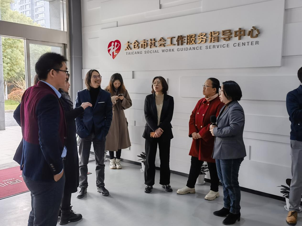 上午,何雪松院长与学院教师团队共同参观了太仓市社会工作服务指导中心。该中心于2021年3月启动,是推动太仓城乡社区治理现代化的重要载体。中心整合形成“网络发现需求-联动平台资源-指导中心处理-社工机构服务”的服务体系,面向全市不同类型的服务对象提供服务。