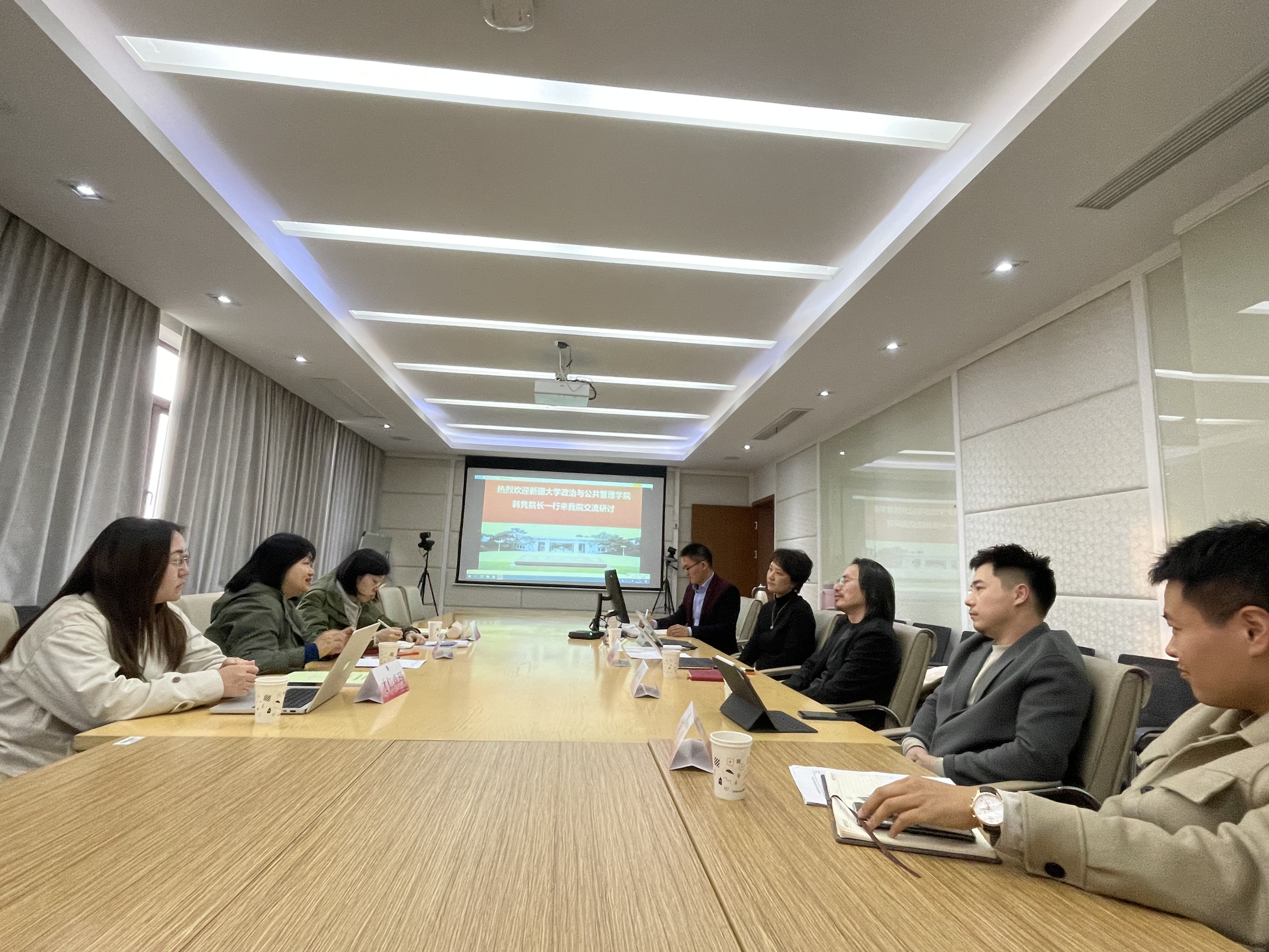 交流伊始,何雪松院长向韩隽院长一行介绍了必赢76net线路官网的总体情况及社会学科、管理学科的建设情况。随后,陈蓓丽副教授向韩院长一行介绍了必赢76net线路官网MSW发展情况。接着,林芳菲老师也向华理团队介绍了新疆大学MSW开展情况,双方就各自开展的MSW教育相关议题进行了深入讨论交流。