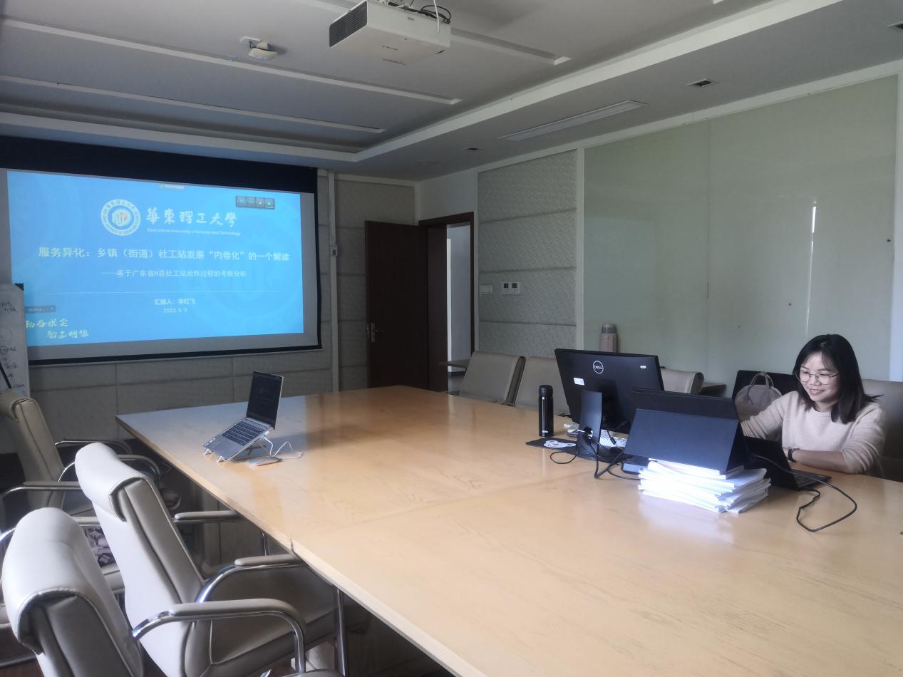 博士生李红飞汇报的题目为《服务异化:乡镇(街道)社工站发展“内卷化”的一个解读》。报告首先梳理了乡镇(街道)社工站建设的背景,指出了社工站发展存在“内卷化”倾向。接着,基于“内卷化”的概念框架,指出社工站的“内卷化”具体表现为服务主体异化、服务关系异化、服务目标异化和服务方式异化四个方面。进一步,从基层政府治理结构、制度设计和行政干预三个方面分析导致社工站“内卷化”的生成逻辑。通过分析乡镇社工站在实践中何以“内卷化”,探讨中国式现代化背景下多元主体共治的结构与制度基础,重新审视国家治理实践中的组织发展,对实际工作部门开展具体的工作或服务具有一定的借鉴作用。