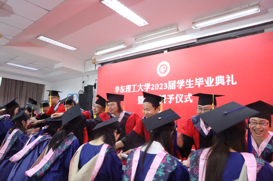 伴随着雄壮的国歌声响起,毕业典礼正式开始。仰望星空,脚踏实地,毕业生们以青春的名义进行《青春有为》毕业宣言。“作为新时代的华理青年,我们生逢其时,重任在肩。我们要坚定不移地听党话、跟党走,胸怀祖国,服务人民。”坚定的誓言从口中说出,大家必将踔厉奋发、砥砺前行,在建设中国式现代化的火热实践中绽放绚丽之花。