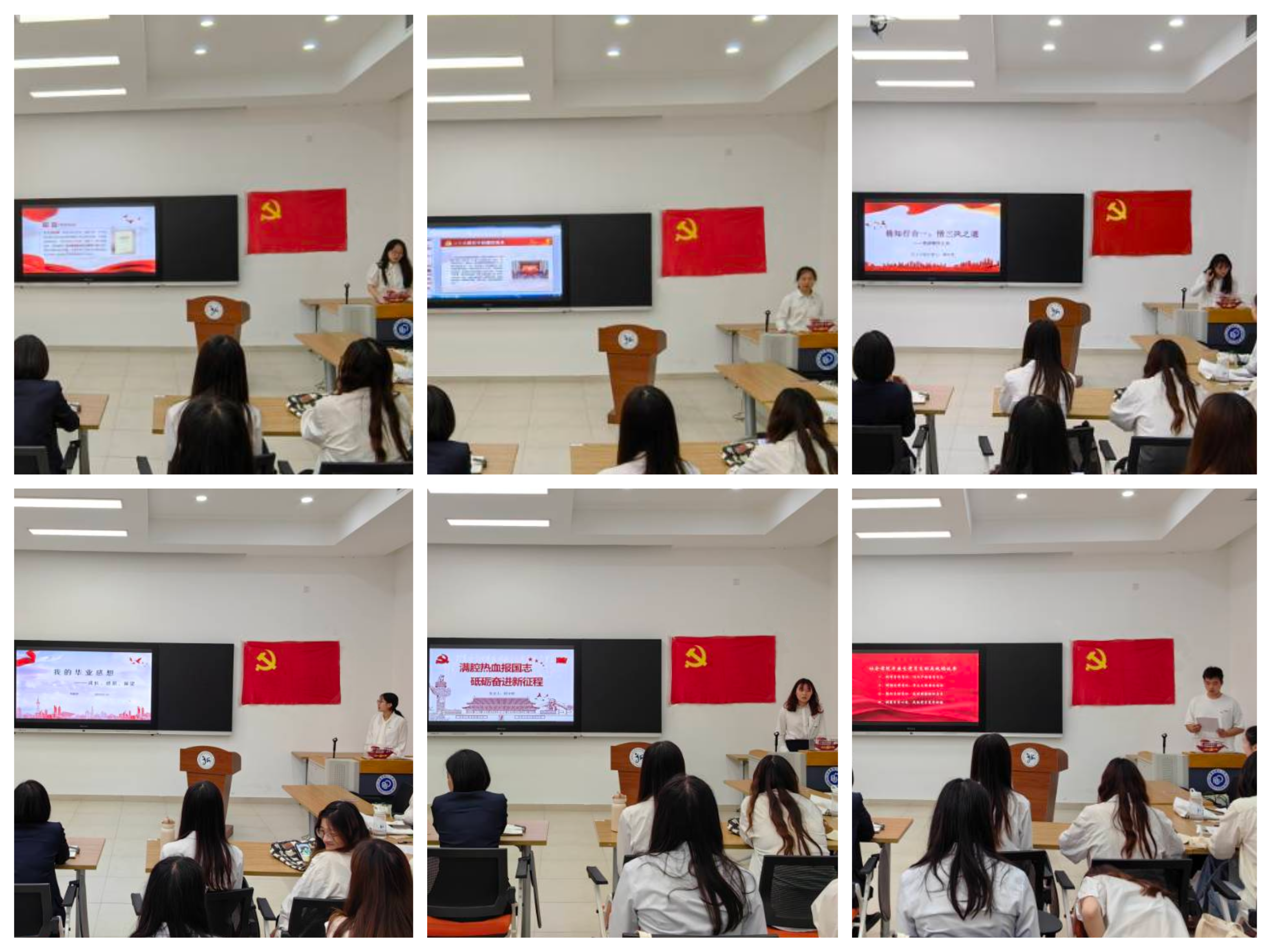 毕业生党员谢玉莹、李霄、张正巧和杨柳带领支部成员从“大兴务实之风”、“弘扬清廉之风”、“养成简朴之风”三个角度学习了习近平总书记在内蒙古调研时对抓实以学正风、解决突出问题的有关要求和指示精神,在深学笃行中汲取奋进前行的磅礴力量。毕业生党员代表刘舫伊和顾宇婷回顾了加入党组织以来的成长历程,分享了自己的入党初心,感恩学校和学院的培养,并表示未来会不忘初心,主动学习,自我反思,坚定信念,以一生的真情投入、一辈子的顽强奋斗来体现我们的爱国主义情怀和忧国忧民之心。毕业生党员代表李宸向全体党员发出文明离校倡议,号召全体毕业生党员树牢身份意识,坚定理想信念,增强纪律意识,发挥党员的先锋模范作用,示范引领全体毕业生文明离校,为维护学校安全稳定、构建和谐校园做出积极的贡献。
