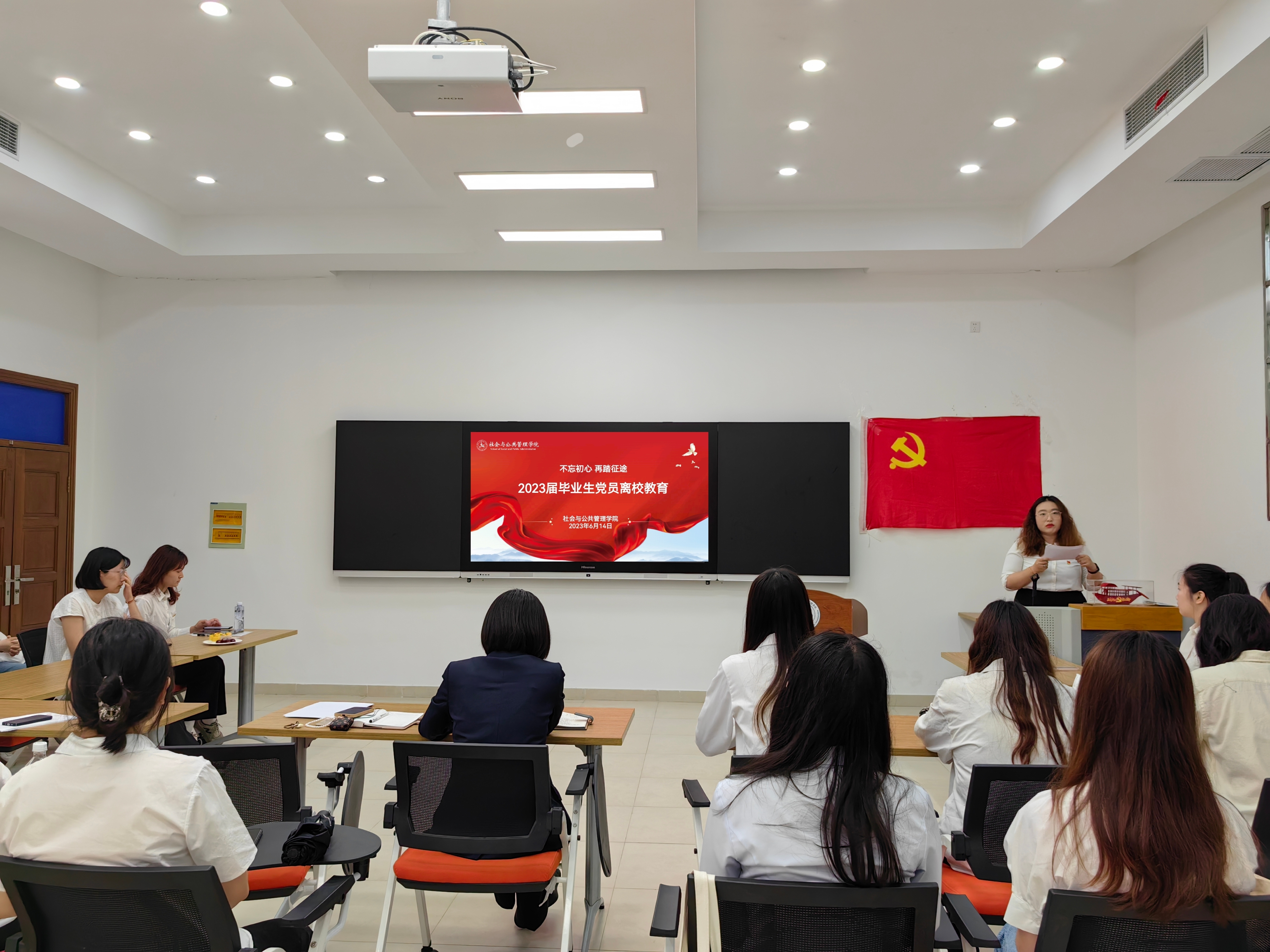 徐汇本科生党支部书记吴维祺祝贺同志们即将毕业,期待大家牢记党员的政治身份、责任担当与自我要求,永葆初心,在未来的道路上践行为人民服务的宗旨。学院党委副书记万胤婕对毕业生党员真诚寄语并提出三点期待:一是信仰意识,不论是升学还是工作,在身份转换过程中始终不忘入党初心;二是学习意识,希望同志们在未来始终保持学习意识,更好了解国情与世界;三是使命意识,要杜绝躺平和摆烂思潮,运用所学知识成为推动社会进步的栋梁之材。最后,万胤婕带领全体党员重温入党誓词。