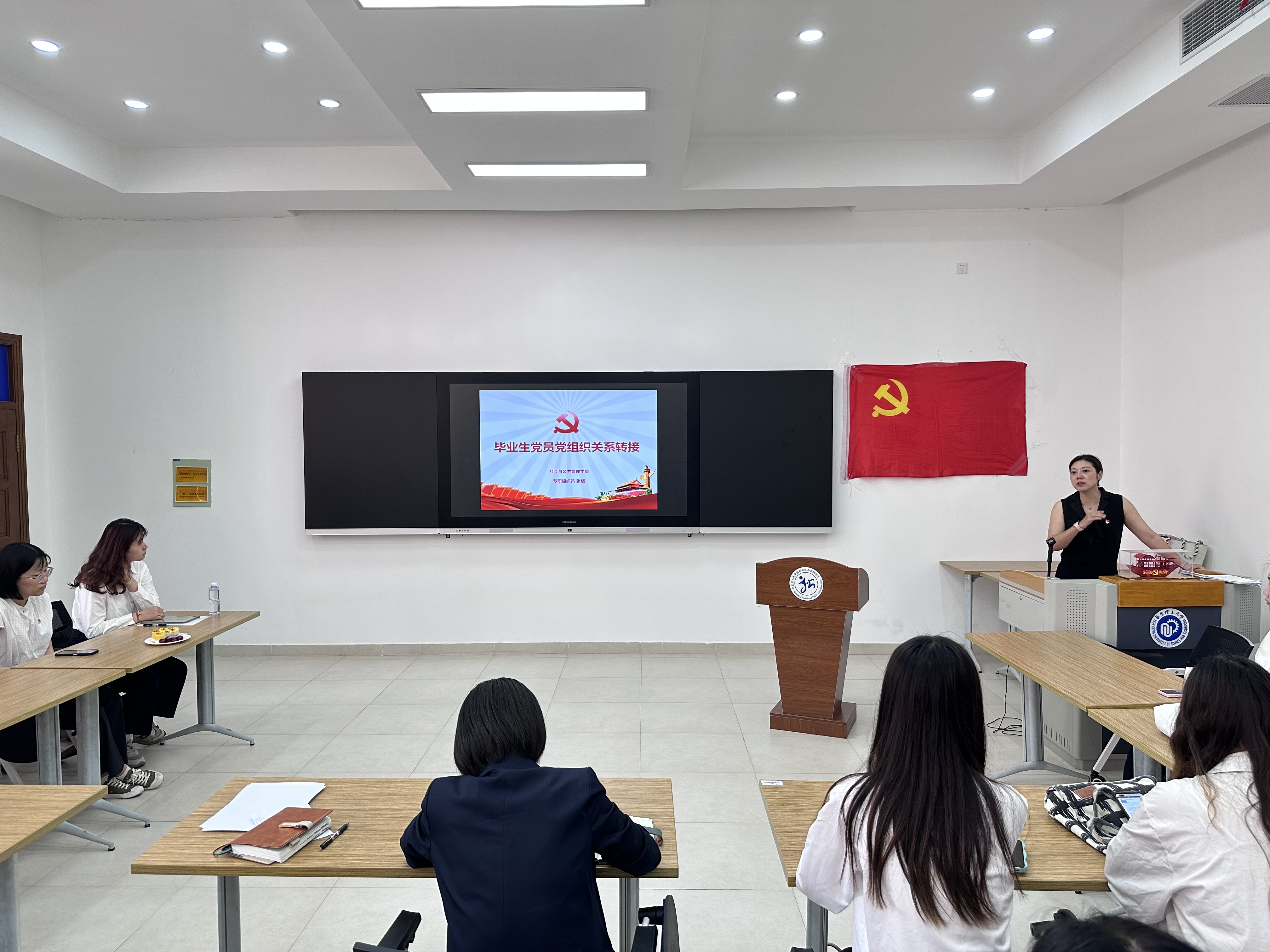 学院组织员张熠介绍了党员组织关系转接工作的原则、详细流程和注意事项,提醒各位党员重视党员身份,按时转接组织关系。