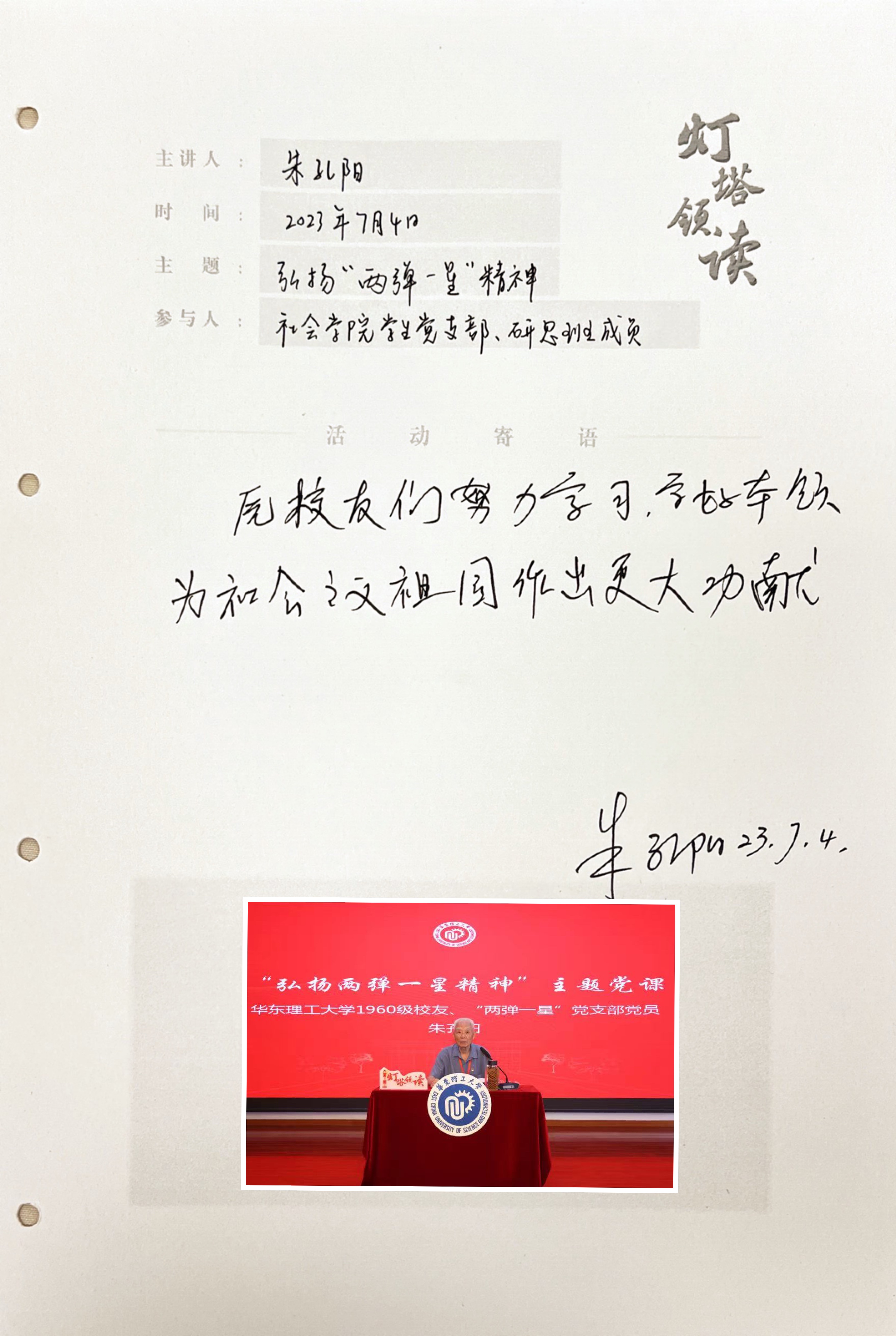 “上世纪60年代,国家有需求、党有号召,作为大学毕业生,就是要到最艰苦的地方去。我根本没有犹豫,打起背包就出发了,虽然不知道未来具体做什么,但我确定我的决定是对的。”7月4日,在上钢新村街道党建服务中心,来自上钢新村街道“蘑菇云”党支部的83岁老党员朱孔阳给来自必赢76net线路官网的00后党员们讲述了60多年前他从华理毕业毅然投身大西北,从事“两弹一星”工程的故事,开启了“灯塔领读”系列沉浸式微党课的第一讲。