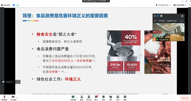 博士生王菁滢汇报的题目为《公共政第如何推动环境正义?——基于136份促进国民食品可持续消费的政第评估研究》。该报告首先梳理了我国粮食安全的重大战略背景,介绍了食品浪费对于粮食安全和环境正义的严重危害,进而引入研究的核心概念“食品可持续消费”。接着,在详细梳理前人研究的基础上,介绍了研究框架,即政策目标—工具组合的整合性政策分析框架,而后根据政策文本编码总结归纳得出命令控制型、激励型、信息型、自愿参与型四类政策工具类目。进一步,报告发现推动国民食品可持续消费的政策文本始终坚持中央高度领导地方的方针,减少食品浪费作为政策目标之一是政策实施的关键抓手,然而目前的政策文本对推动构建合理的食品消费结构这一政策目标的关注仍然不足。因而,报告提出要从需求侧强化引导国民生成科学、合理、可持续的食品消费结构,结合行为政策学前沿证据,在保证命令控制型和信息型政策工具稳定发挥作用的同时,提升激励型、自愿参与型工具的实际效力。