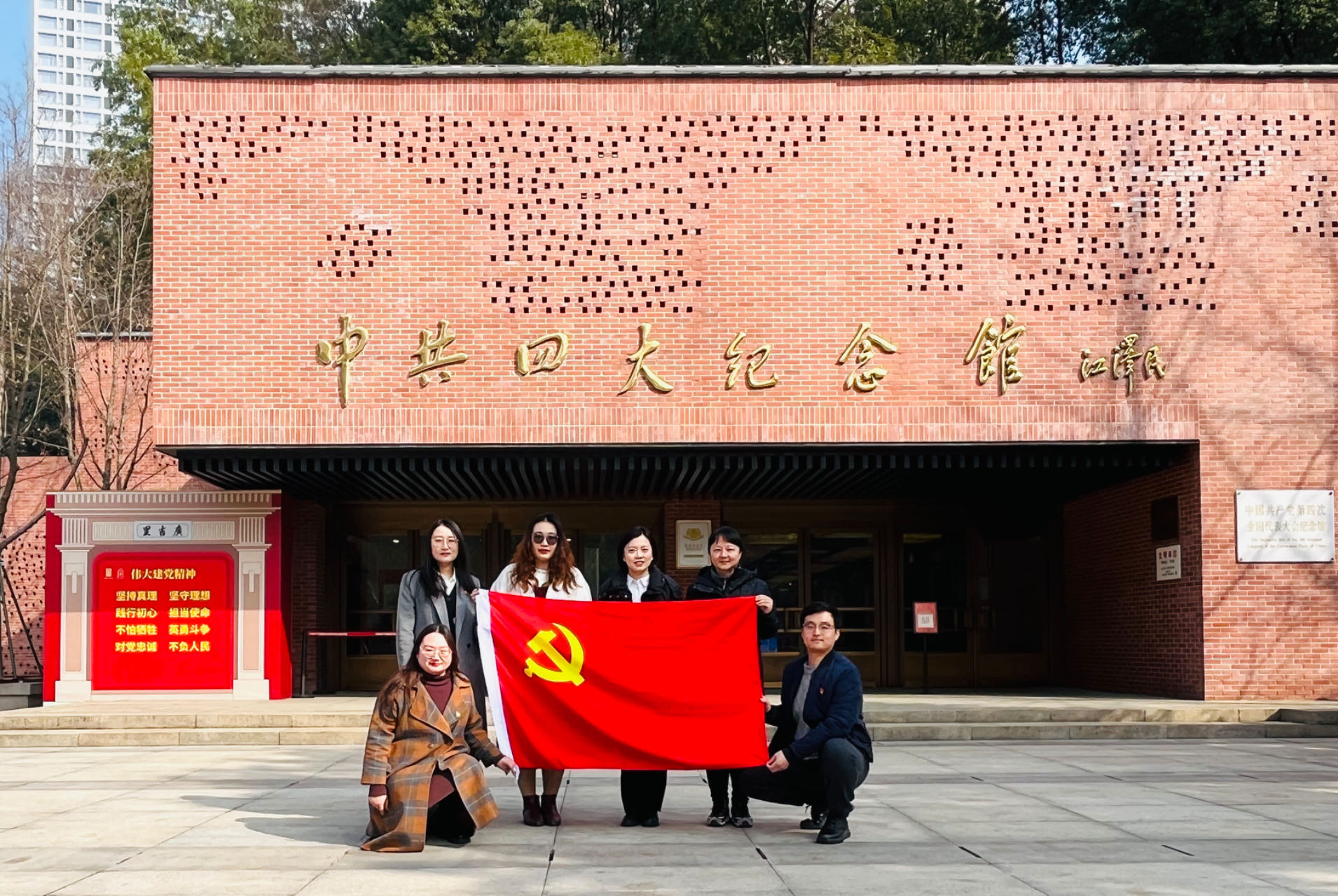 1925年1月,中国共产党第四次全国代表大会在上海召开。中共四大在中国革命史上具有重要意义,在党的历史上第一次明确提出无产阶级在民主革命中的领导权和工农联盟问题。党员同志们先后参观了“时局与形势”、“筹备与召开”、“发展与召开”三大展厅,近距离观摩了丰富的手稿和历史文物,重温了中国共产党在艰苦卓绝的环境下,为实现国家独立、民族解放而艰苦奋斗的历史过程。最后,在万胤婕的领誓下,全体党员面向党旗,重温入党誓词,不忘初心、牢记使命,铭记历史、砥砺前行。