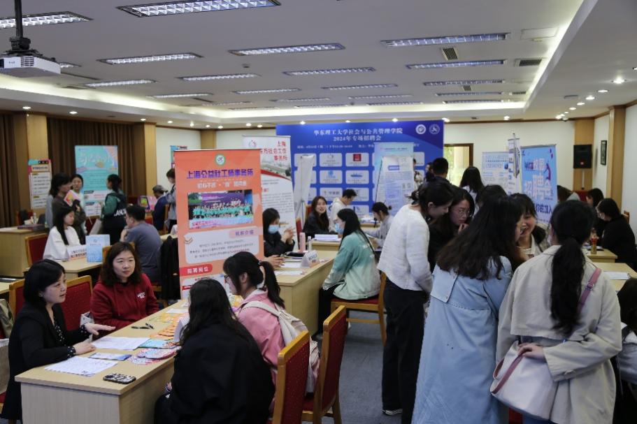 本次专场招聘会为用人单位和学生搭建了双向供需交流平台,充分突出学科特色,积极调动学院教师、校友及社会各界力量,邀请了上海公益社工师事务所、上海东方社会工作事务所、宁波建工股份有限公司、上海大华工程造价咨询有限公司、上海学而思教育培训学校等近20家用人单位参加,为学院本研毕业生提供了近百个符合学科专业特色、发展前景广阔的工作岗位,吸引了大量同学前来咨询、投递简历。
