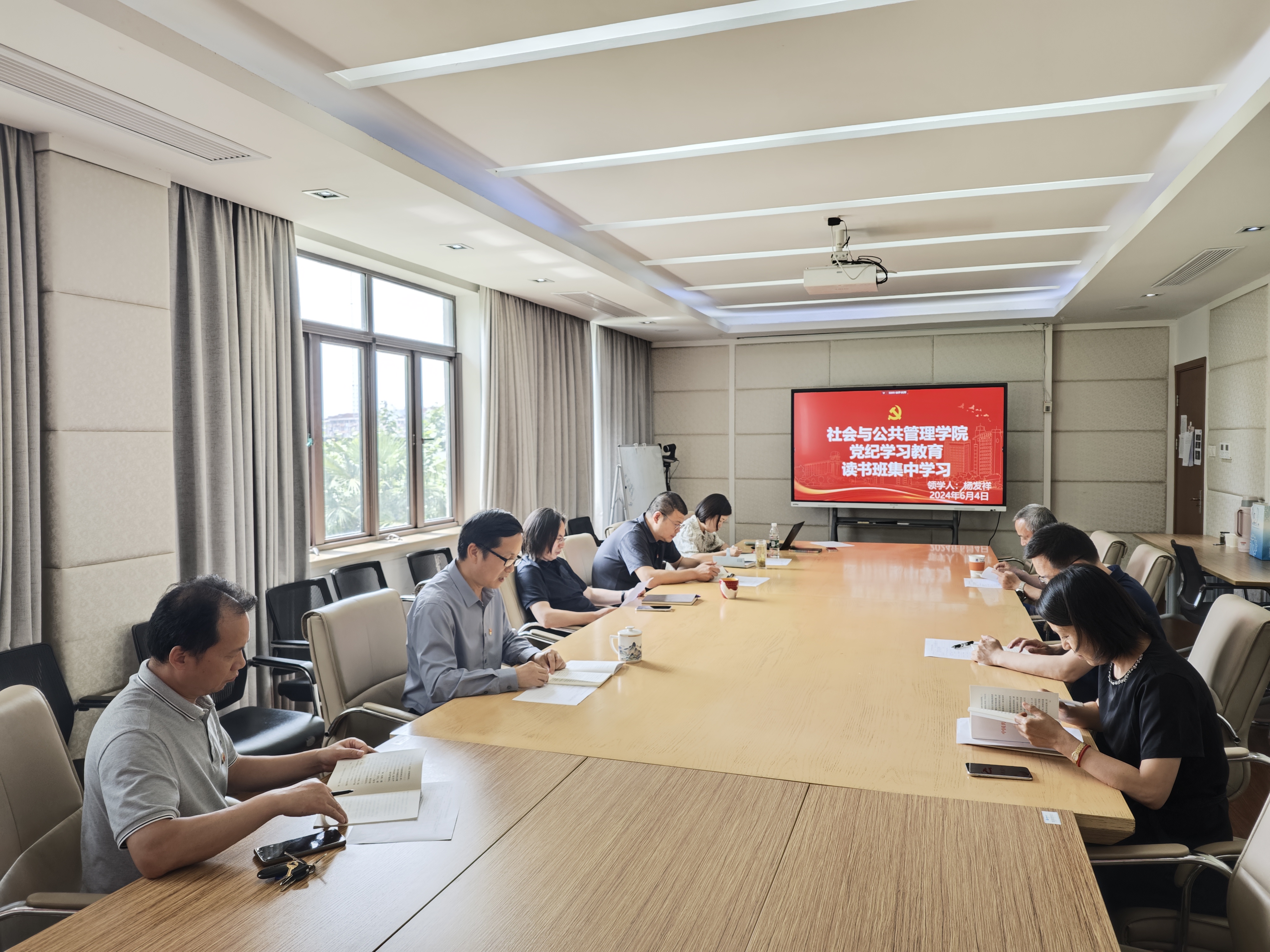 6月4日,必赢76net线路官网党委中心组按照《中共必赢76net线路官网社会与公共管理委员会开展党纪学习教育实施方案》开展党纪学习教育第四次读书班活动,由学院党委委员、副院长杨发祥同志领学《中国共产党纪律处分条例》第六章和第七章内容。