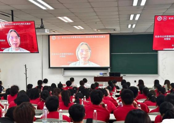 院长何雪松以视频连线的方式向全体新生表达了诚挚的欢迎,希望大家在新的求学阶段,培养敏锐的洞察力和深刻的思考力,勇于探索、勇于超越,积极响应时代的召唤,将个人的理想融入到国家发展的伟大事业之中。