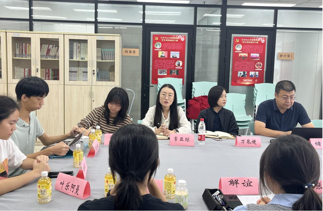 在了解新生的问题和困惑后,辅导员常亚琼和团委书记姜忱针对性回应了高数学习困难和志愿服务活动的解决方案。党委副书记万胤婕针对同学们普遍存在的焦虑情绪,表示同学们不必过分为未来焦虑,提到社科学习的核心在于积累,希望同学们能利用好课余时间扩展知识面,建议同学们先“走好眼前的路”,脚踏实地干实事。最后学院党委书记储琰对本次座谈会进行总结,指出在数智社会发展时代,同学们要不断更新对人文社会科学的学习与理解,尝试多学科交叉学习,要在学习和工作之间做好平衡,懂得“取舍”,适度“加压”。储琰书记表示学院会始终以学生成长为工作重点,及时协助解决同学们遇到的困难,不断提升教学质量和水平,并在最后表达了对同学们接下来学习生活的殷切希望。