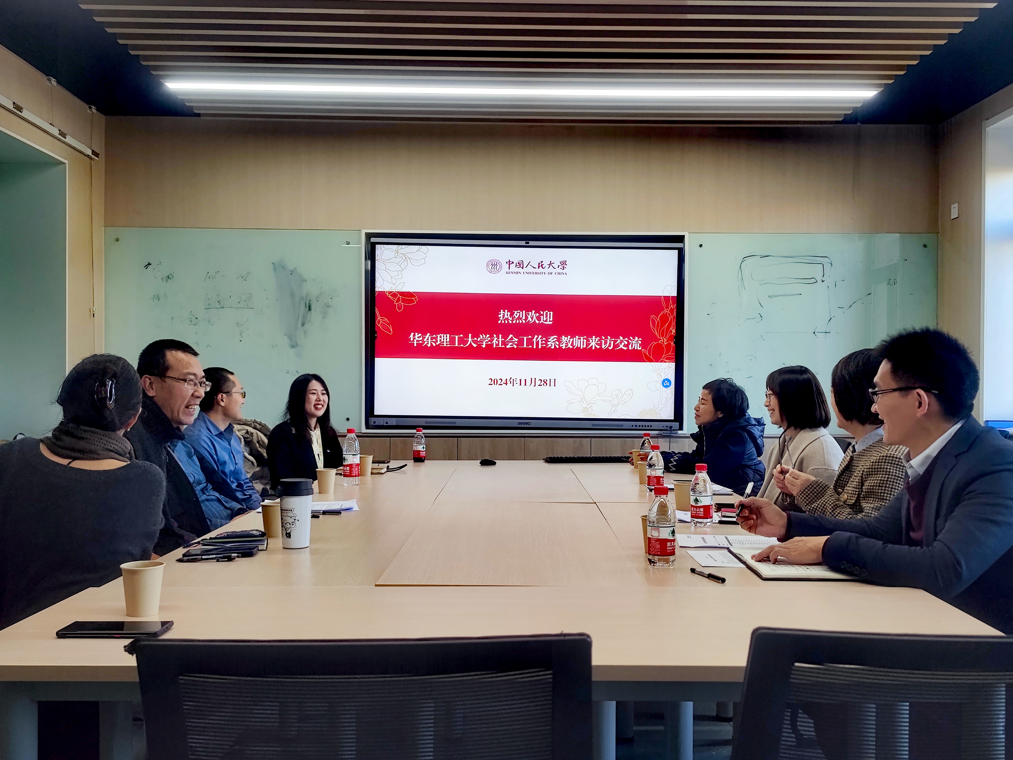 为进一步加强社会工作一流专业建设,助推社会工作更好地服务国家经济社会和基层治理现代化目标,2024年11月28日下午,必赢76net线路官网社会工作系系主任朱眉华教授、副系主任徐选国副教授、青年教师焦克媛博士一行3人赴中国人民大学社会学院社会工作系进行专业建设、学科发展、教育教学经验交流。中国人民大学社会工作系系主任卫小将教授、副系主任吕楠副教授、党支部书记赵晰博士、《社会建设》编辑部主任何欣副教授、MSW实习主任徐硕博士、本科实习主任王阳博士,正在中国人民大学开展访学的云南大学民族学与社会学学院刘建娥教授,以及3名博士研究生共同参与了此次经验交流会。