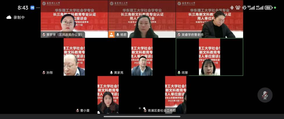 专家组就自评报告有关问题进行提问,就课程大纲、课程思政、人才培养、实习实践设计逻辑等相关议题与社会学系老师进行了进一步沟通与交流。