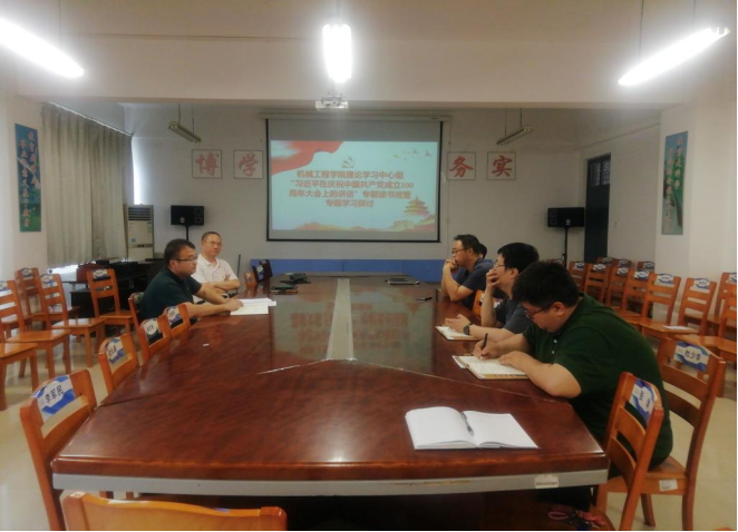 7月4日,机械工程学院党总支理论学习中心组在A08-302会议室召开学习贯彻“习近平总书记在庆祝建党100周年大会上的讲话”专题读书班暨专题学习研讨会,学院党总支中心组全体成员参加会议,党总支书记邓辉主持会议。